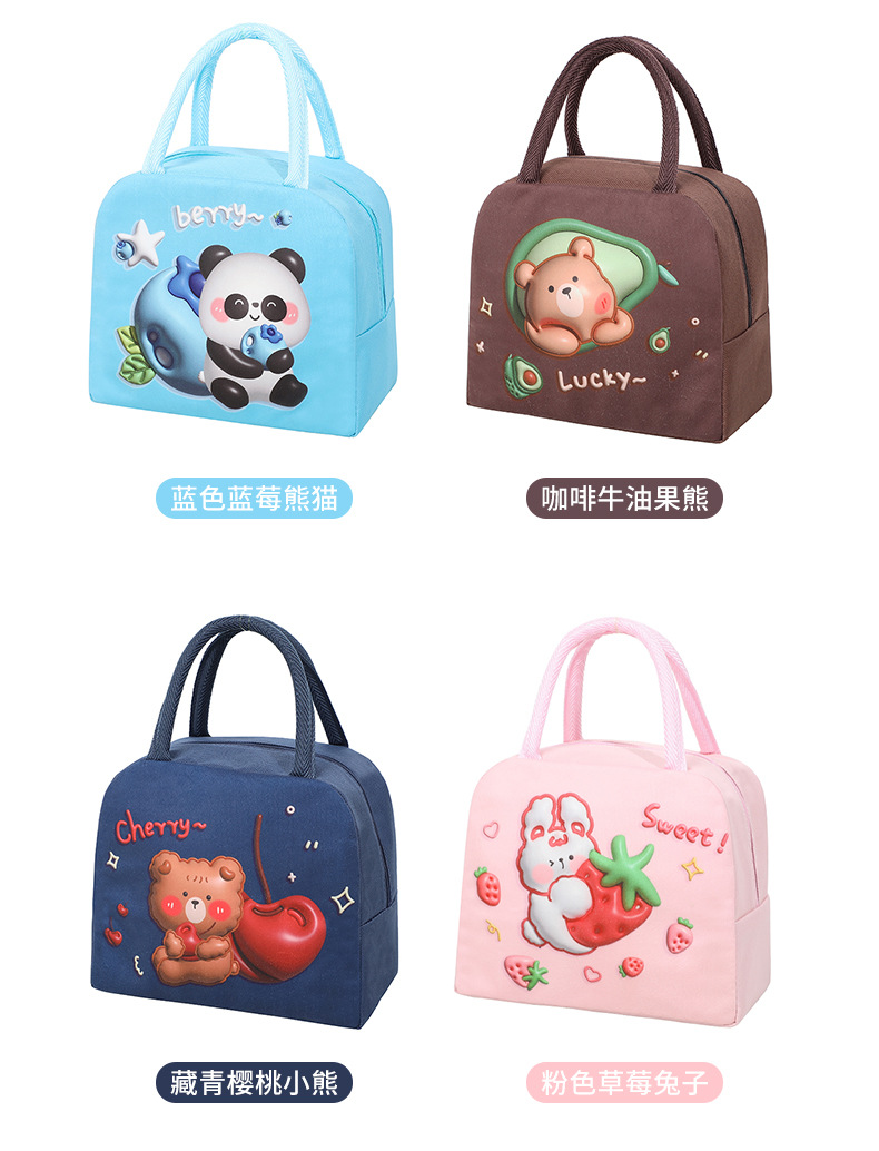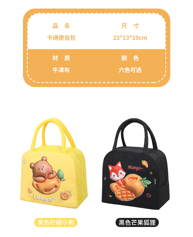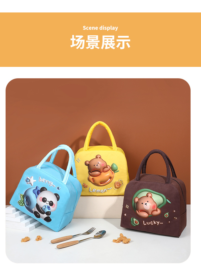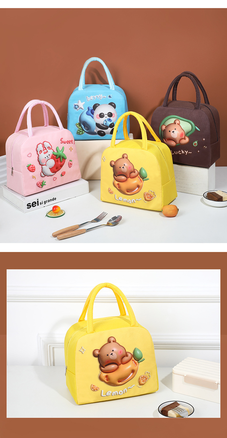 小学生のかわいい動物弁当バッグ、お出かけ用小型バッグ、お弁当用保温バッグ、角型立体弁当箱保温バッグ