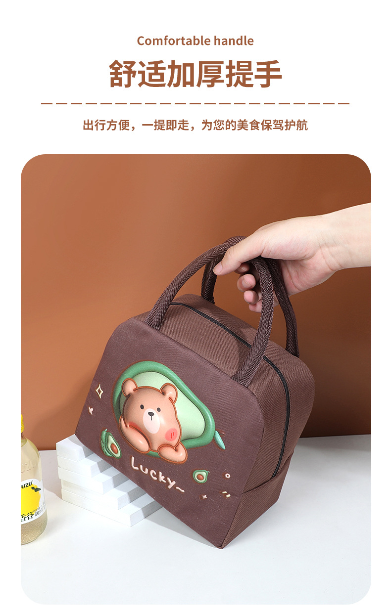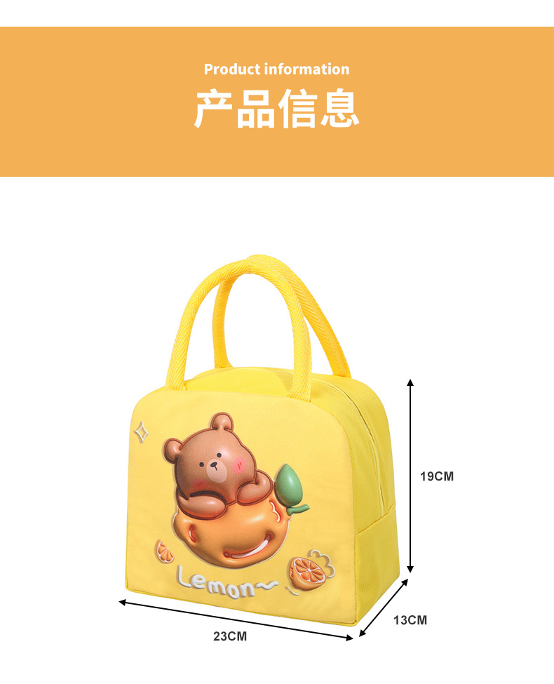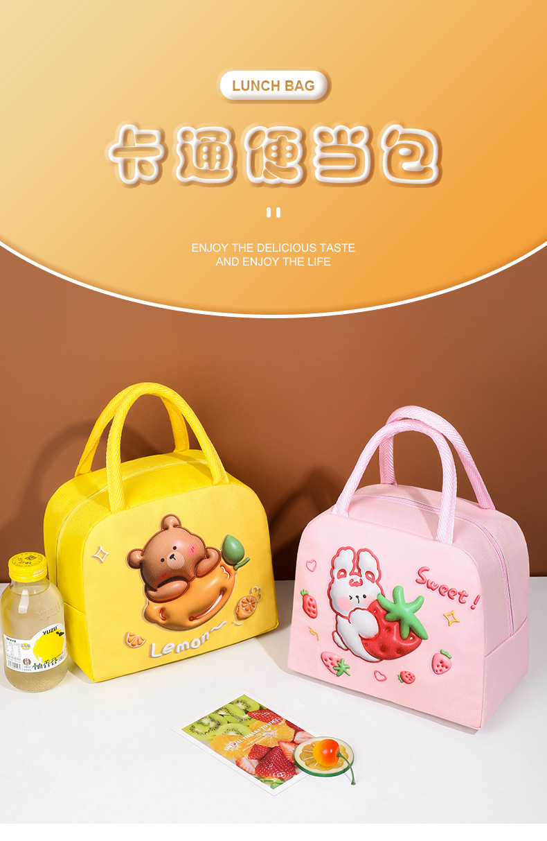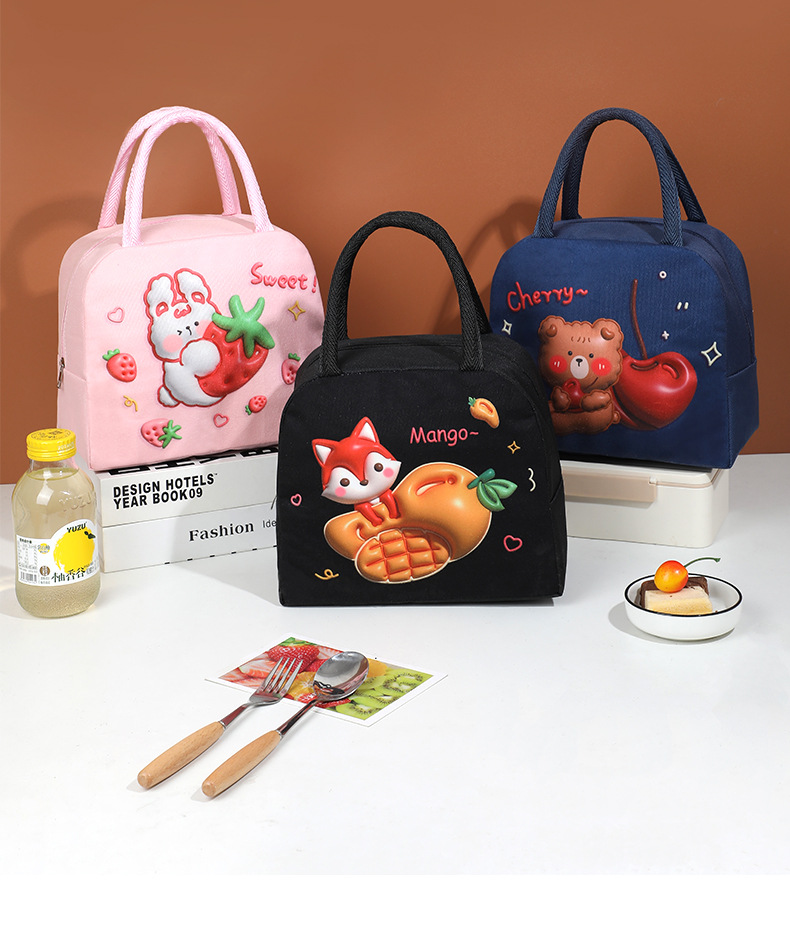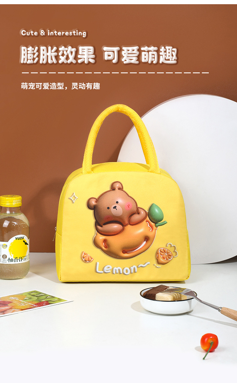 小学生のかわいい動物弁当バッグ、お出かけ用小型バッグ、お弁当用保温バッグ、角型立体弁当箱保温バッグ