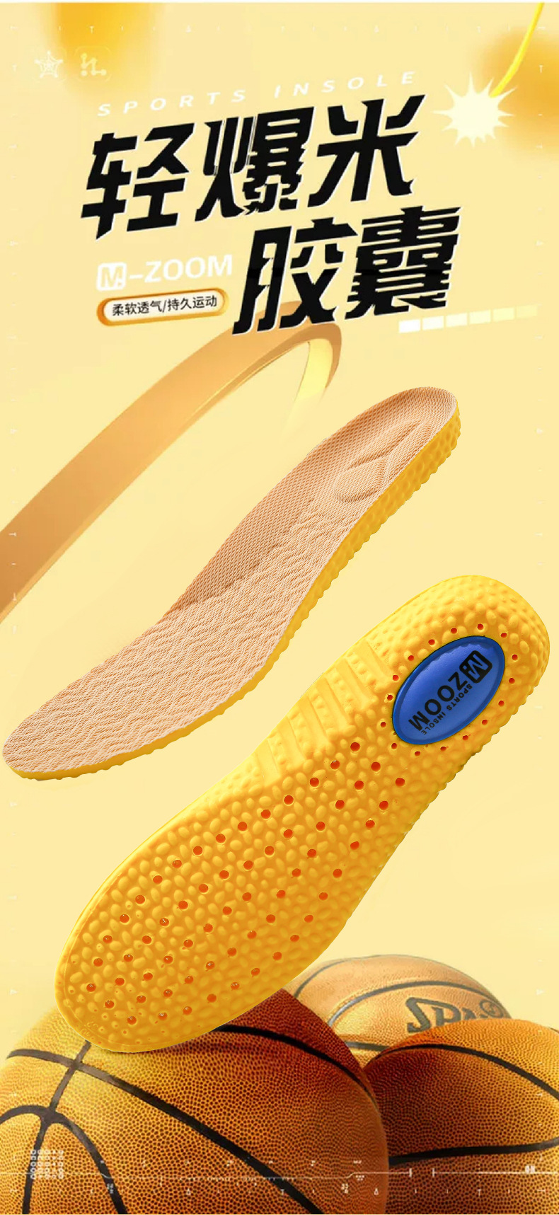 メーカー卸売ズームスポーツインソールメンズブーストポップコーン軍事訓練衝撃吸収通気性高弾性インソール