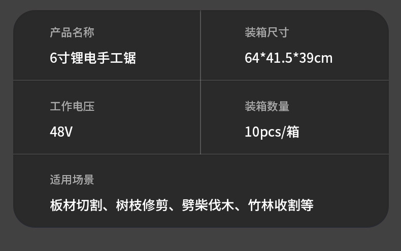 电锯家用锯树小型便携6寸锂电手电锯充电式手持电动锯树神器批发