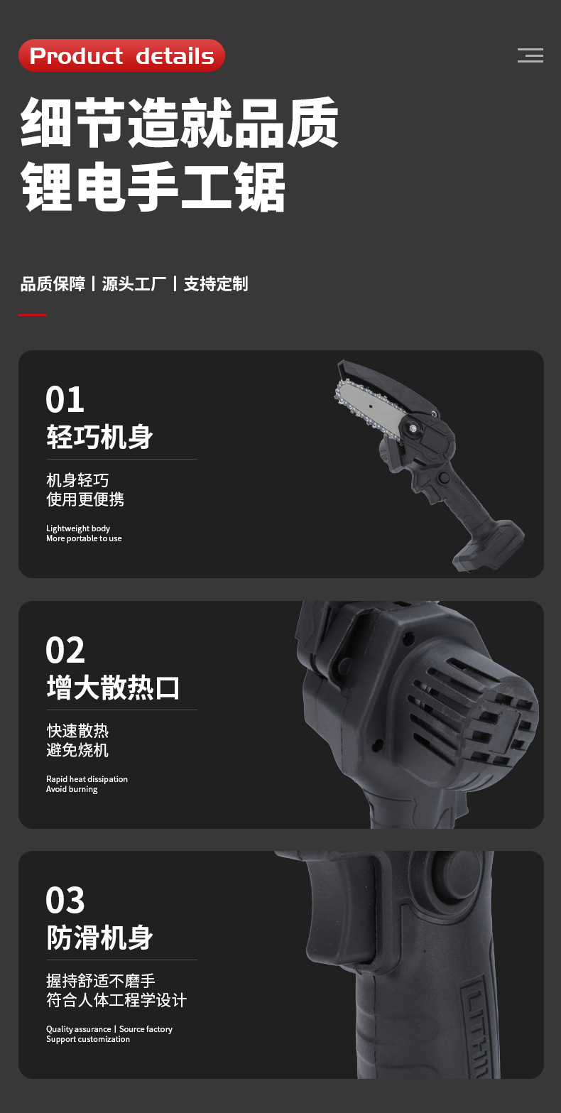 跨境锂电手电锯小型迷你单手电动砍树修枝便携电链锯批发