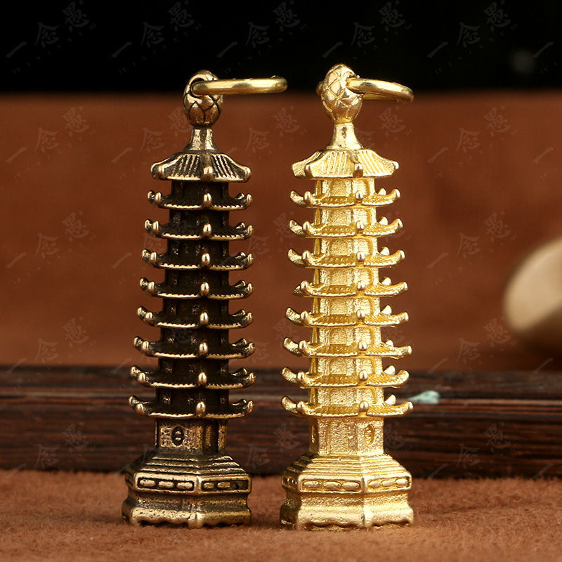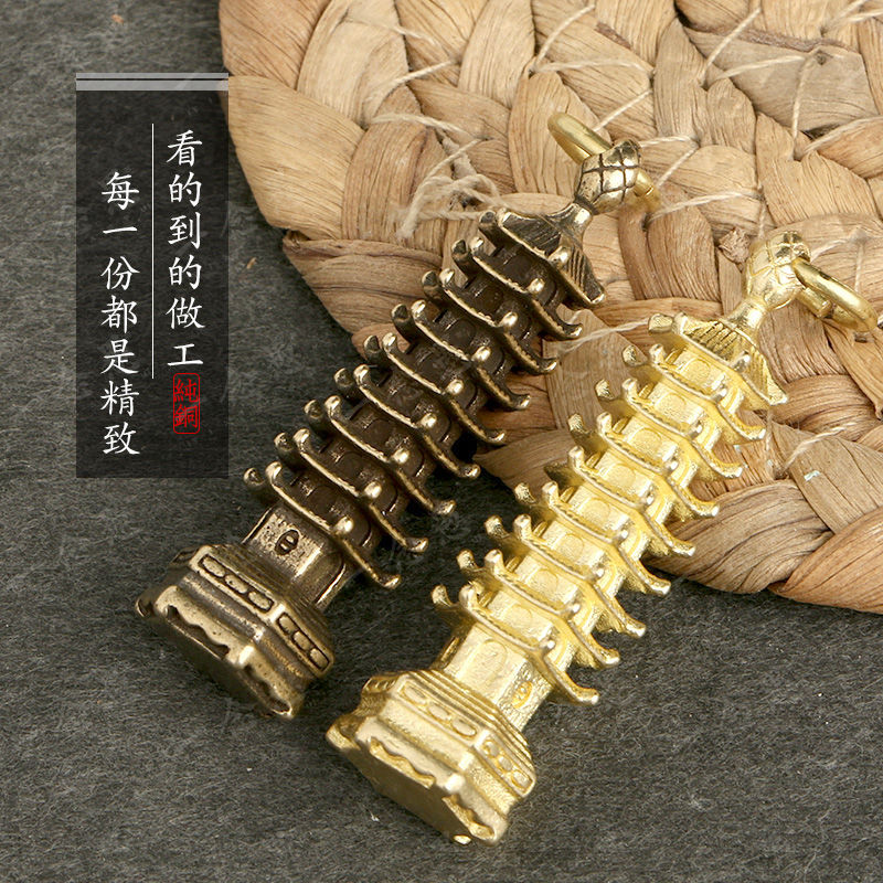 純銅文昌塔五帝銭キーホルダーストラップ自動車の鍵ストラップは9階13階を持ち歩いている