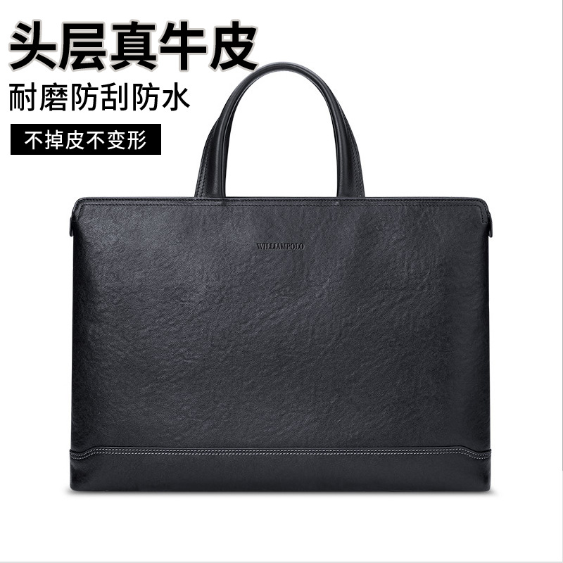 英皇ポール男性ブリーフケース本物の頭皮牛革ファイルバッグ15インチパソコンバッグ防水耐摩耗性ハンドバッグ