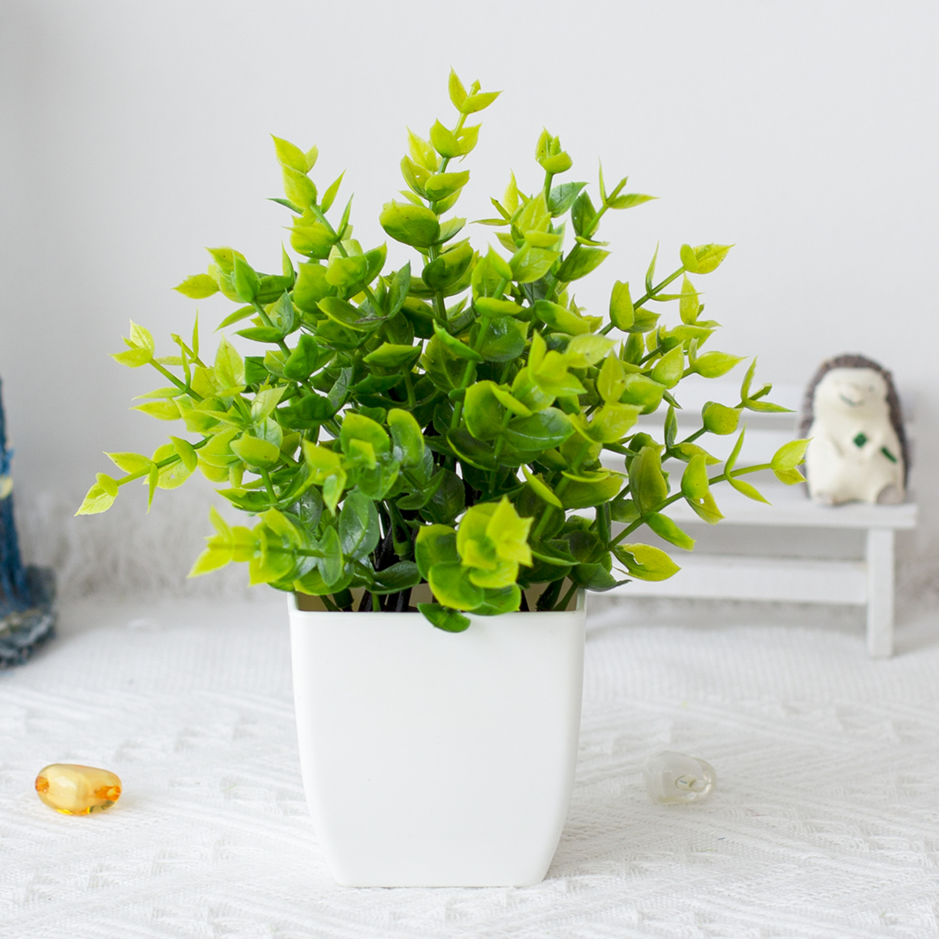 国境を越えた卸売模擬小さな鉢植えユーカリ緑植物ホームオフィスクリエイティブ装飾品プラスチック花小さな盆栽 ·