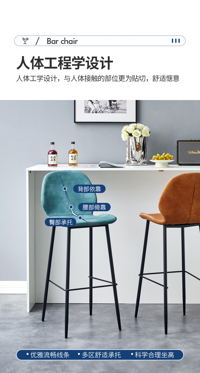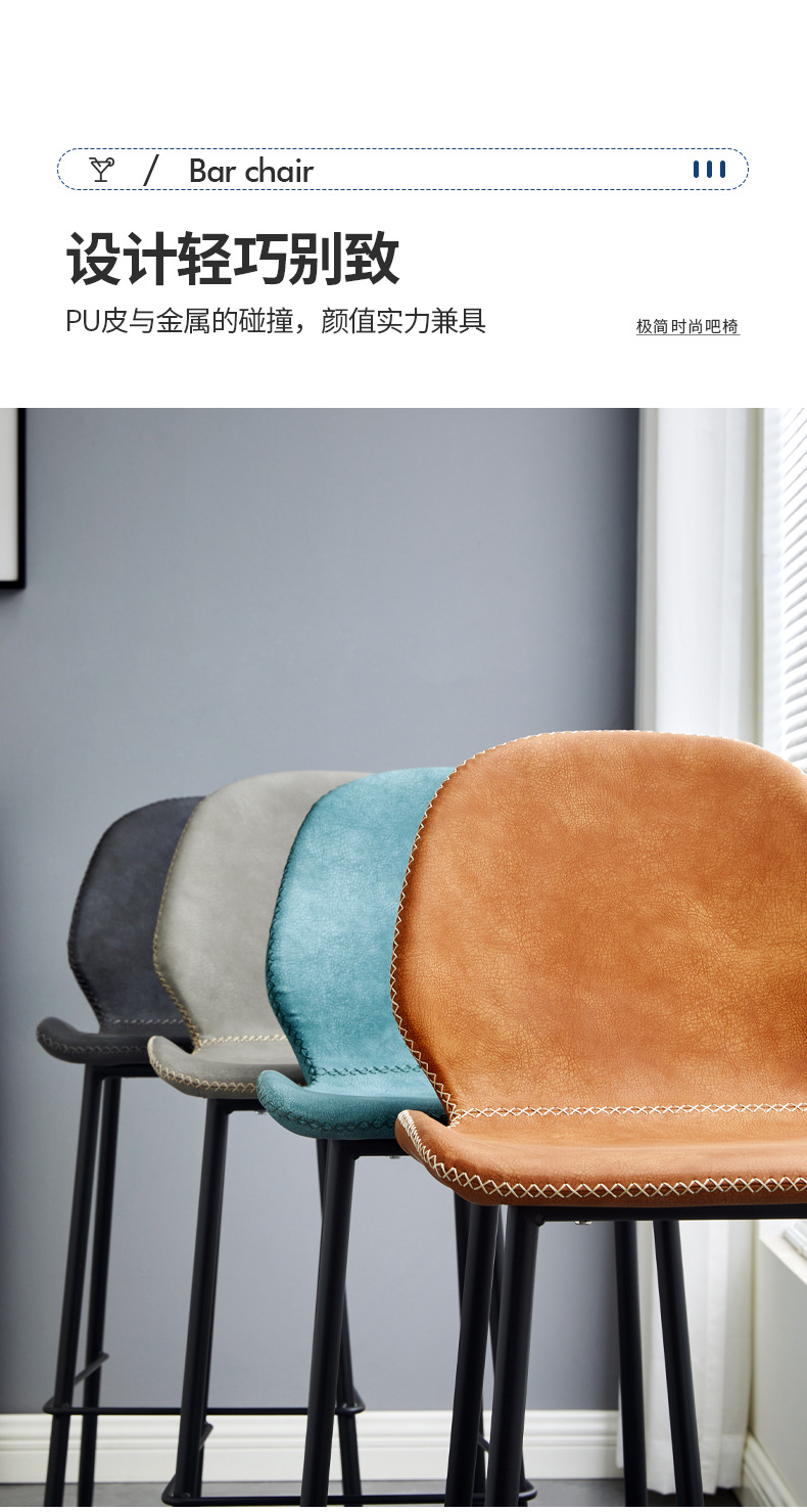 轻奢高级家用网红时尚高脚凳北欧酒吧高脚吧台椅意式铁艺吧台椅子
