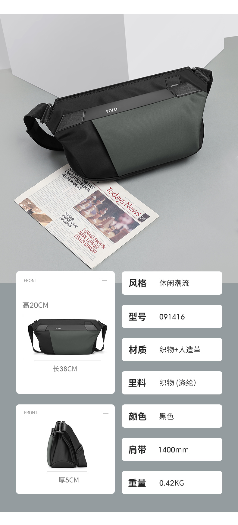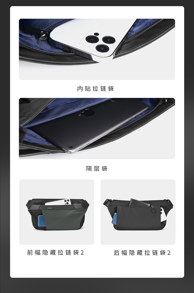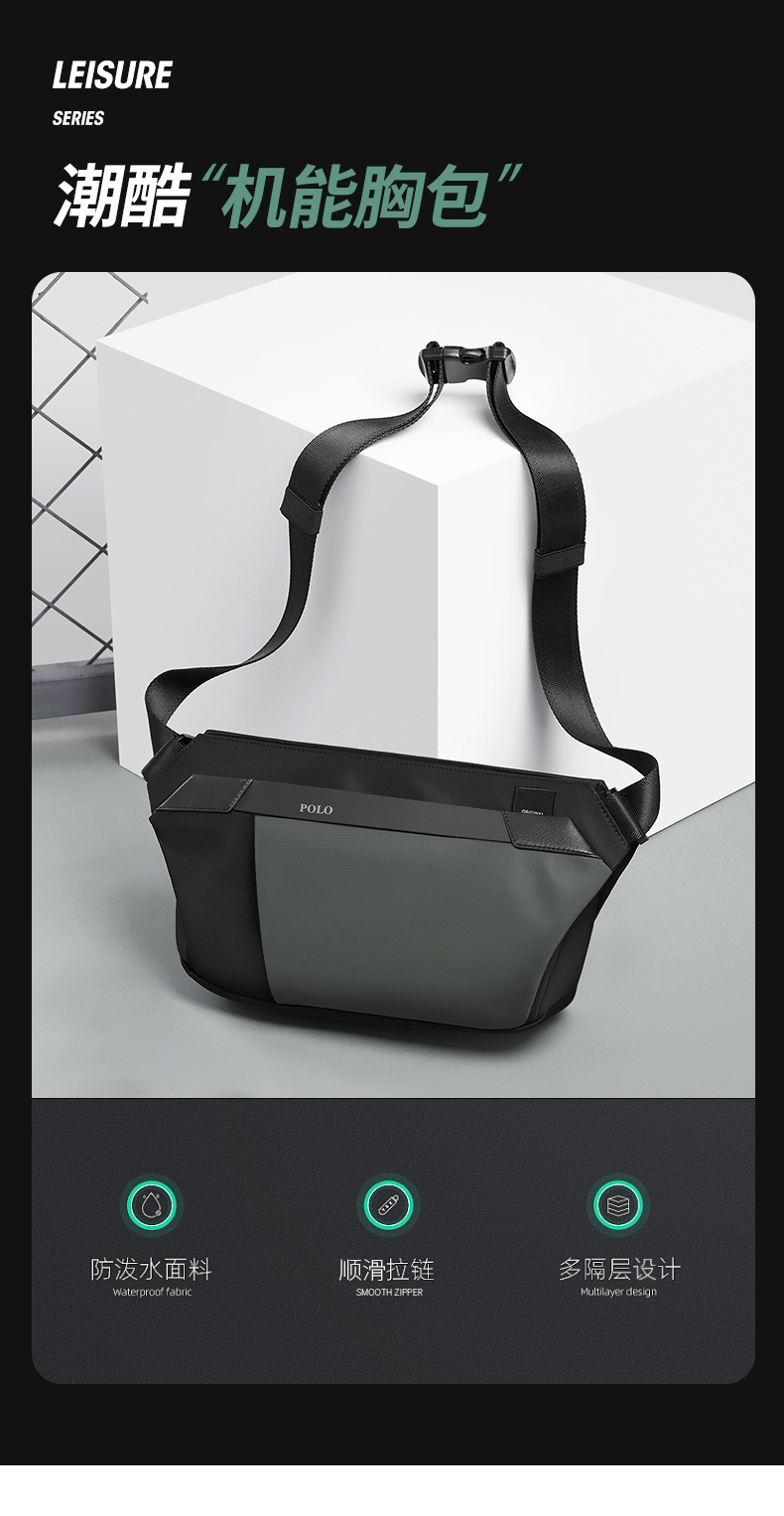 Polo胸バッグ男性シンプルカジュアル男性ショルダーバッグ新型男性バッグ防水オックスフォード布シングルショルダーバッグ男性