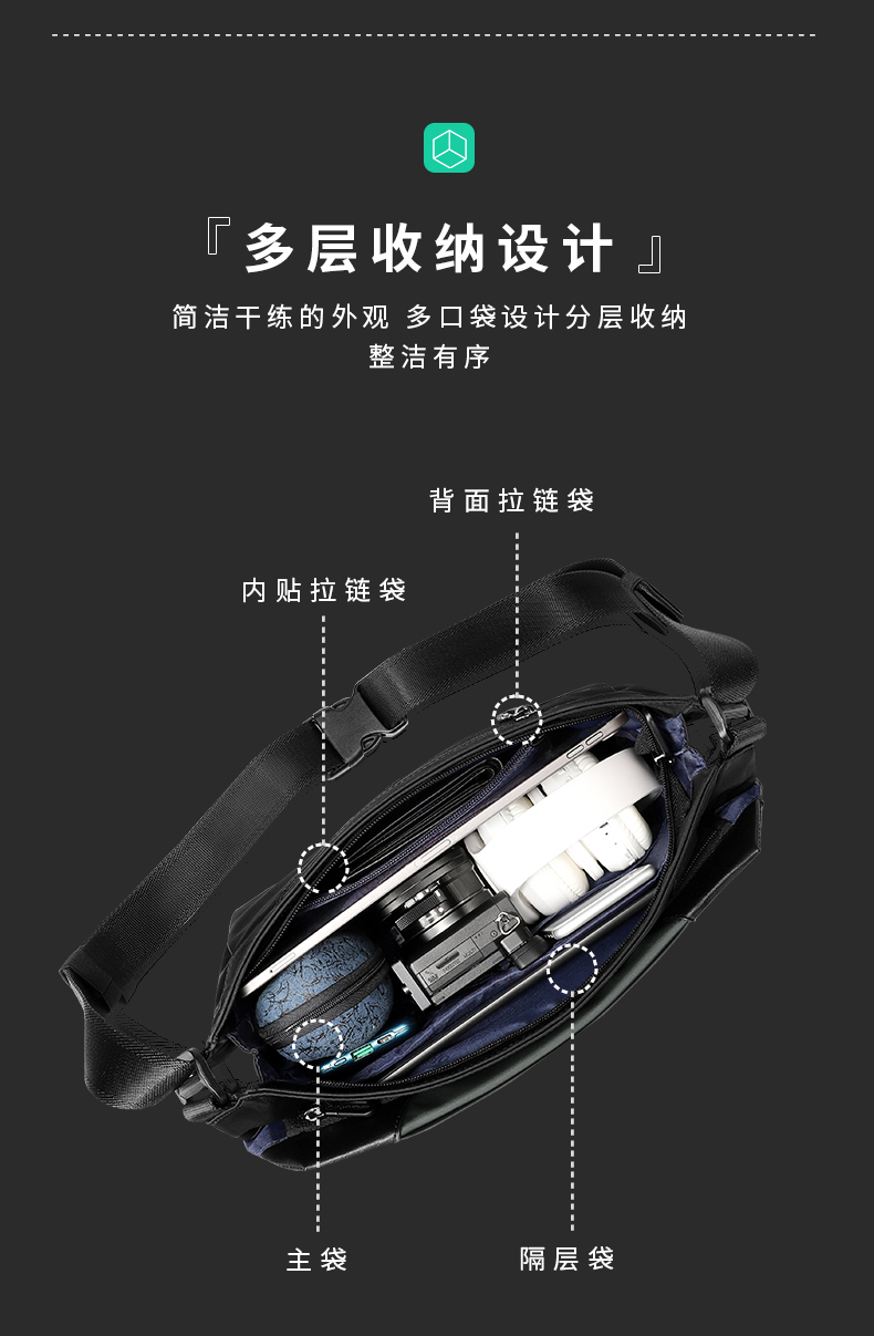 ChuongKaiye男士斜挎包多功能防水单肩包ipad潮牌斜背机车包百搭