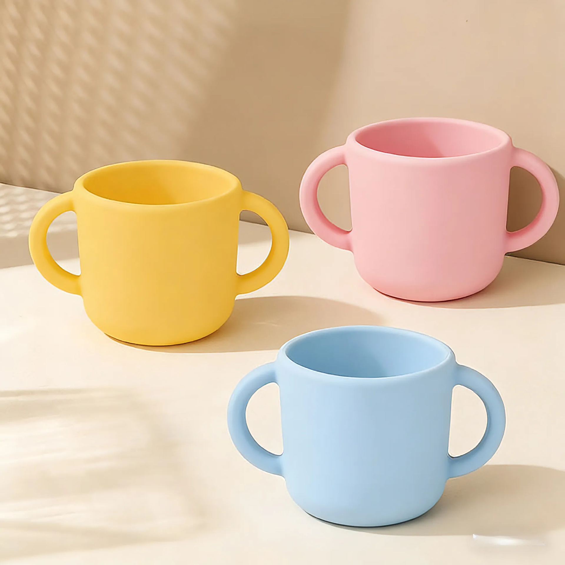 食品級シリカゲル子供ミルクカップ赤ちゃん両耳補食カップ耐高温転倒防止訓練カップ