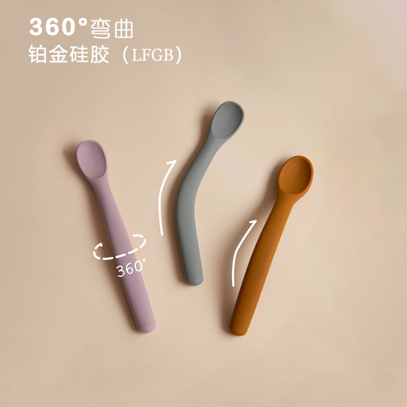 1歳の赤ちゃんは訓練スプーンを食べて360 ° 勝手に曲がった子供が自主的に柔らかいシリカゲルを食べてスプーンを捻った