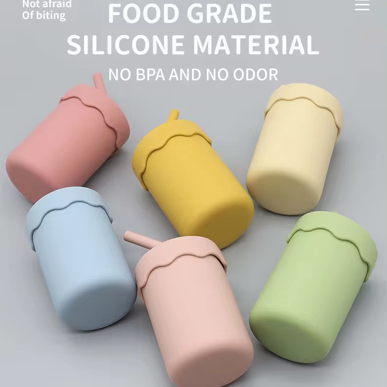 跨境吸管杯弯管杯子宝宝硅胶水杯婴幼儿学饮杯食品级耐摔喝水杯