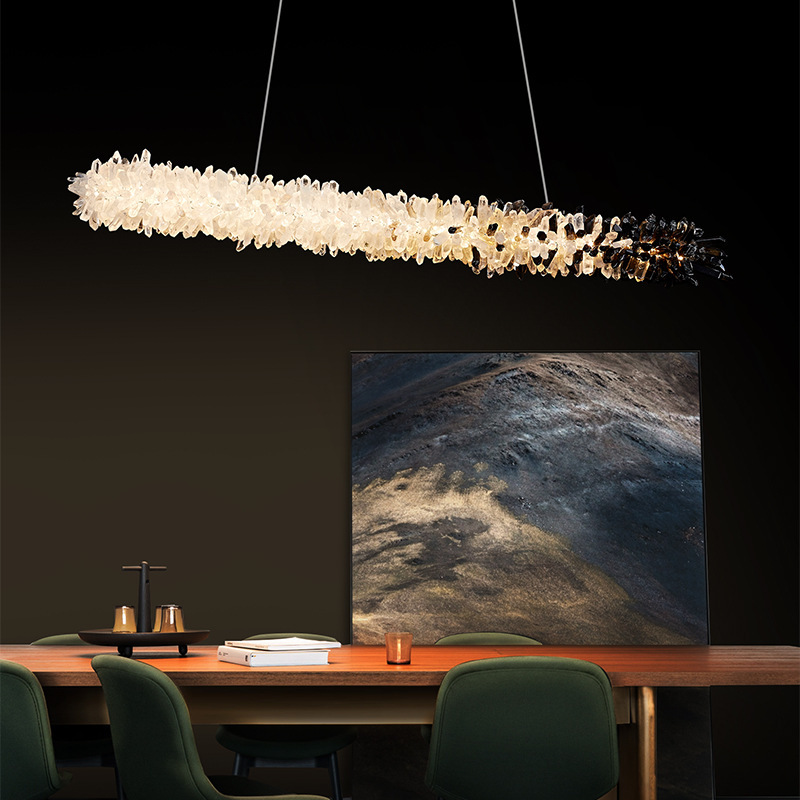 2024新型天然水晶一字長条灯軽豪華ヨーロッパ式シンプル知能食堂全スペクトル保護レストラン