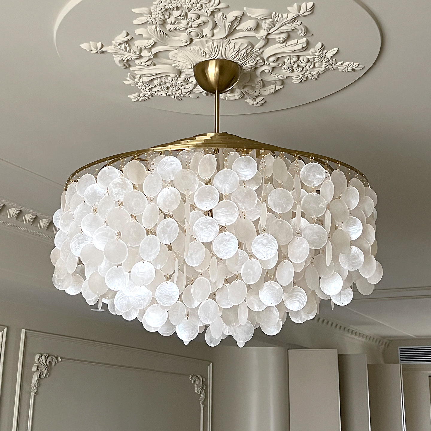 意大利法式中古风奶油复古贝壳吊灯餐厅卧室北欧轻奢客厅风铃灯具