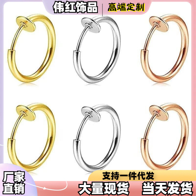 パンクスタイルのスプリングイヤークリップ、ピアスなし、ヨーロッパとアメリカのクロスボーダーユニセックスステンレススチールコイルイヤリングメーカー