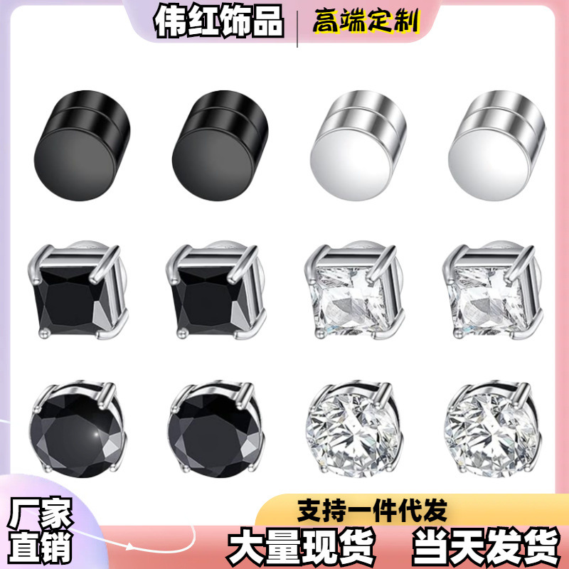 国境を越えたセットはジルコンの耳に耳の穴がない耳飾りステンレス磁石の耳にカップルの偽のピアスが望ましい