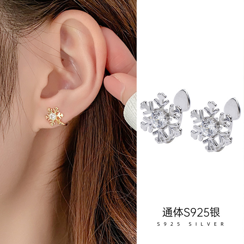 ガジュマルの木の下のS925銀の小衆の雪の花の耳の穴がない耳のクリップの女性のシンプルで清新な韓国版のネットの赤い秋冬の耳の骨の耳飾り