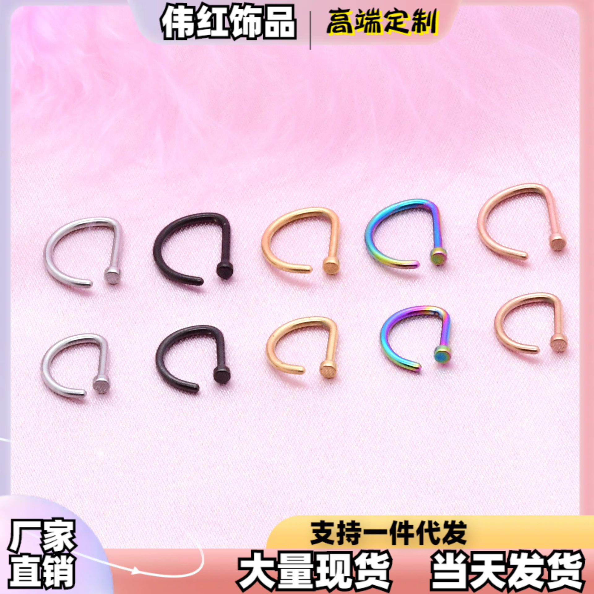 クロスボーダーのステンレスD型シンプルなアメリカ式の個性的なスタイルの鼻の輪は穴があいていません。