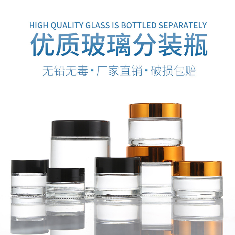 現品5g-100g透明ガラス化粧品クリーム空瓶広口瓶クリーム瓶透明マスク分注箱