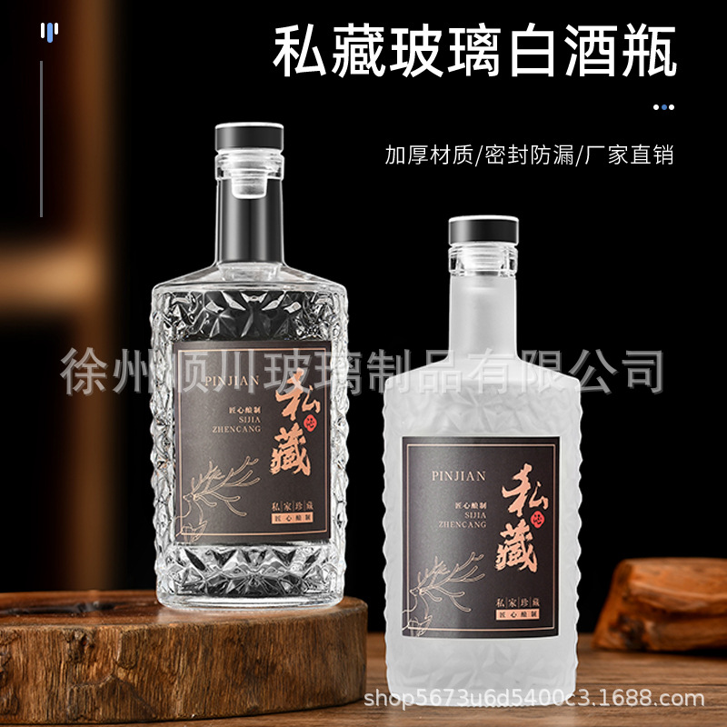 酒水包装白酒瓶500ml透明玻璃磨砂空瓶自酿贴纸酒瓶酒盒礼盒包装