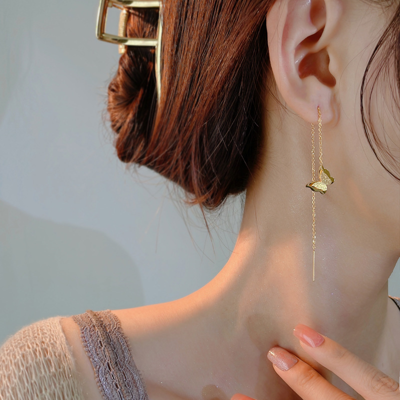 蝶流蘇耳線2023年新型潮18k金耳飾り女性小型ファッション彩金イヤリング森系イヤリング