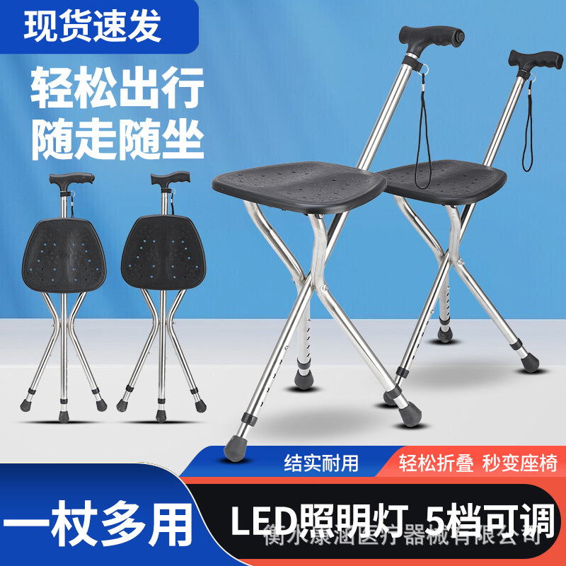 手杖凳不锈钢老年人折叠伸缩三脚拐杖凳三角拐杖凳