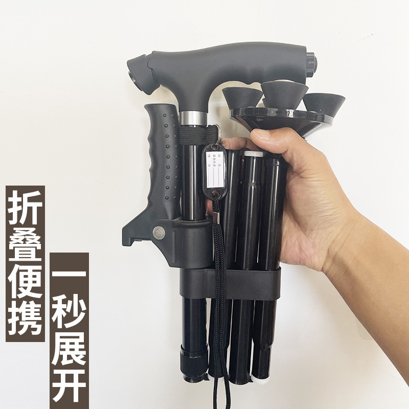 老人松葉杖四脚伸縮ステッキ高齢者用折りたたみアルミ合金軽量多機能ランプ滑り止め松葉杖