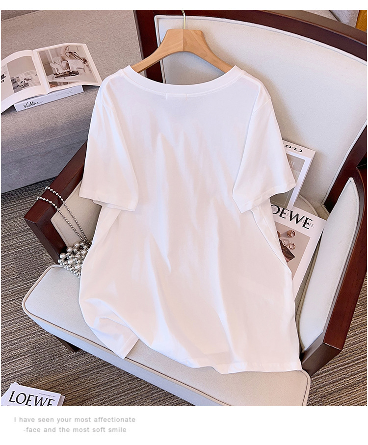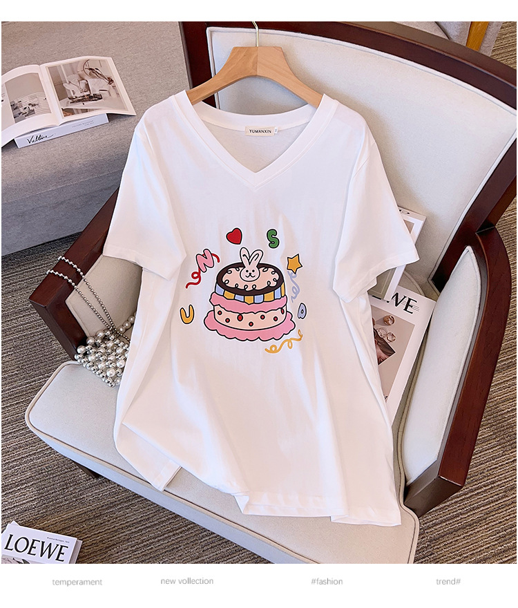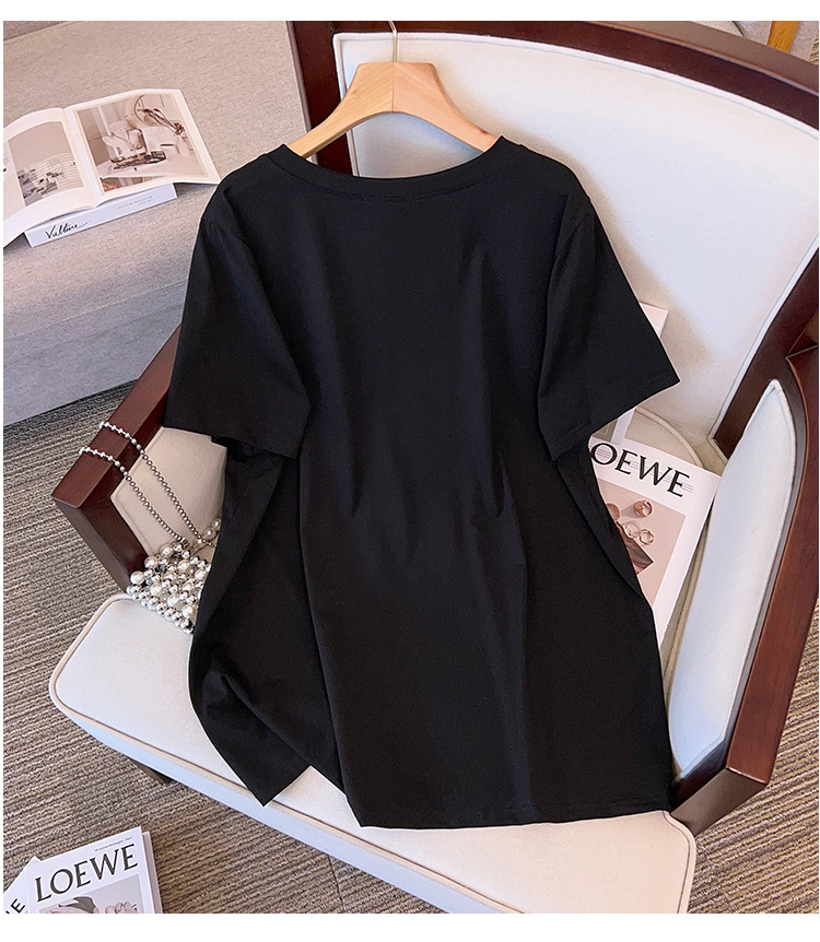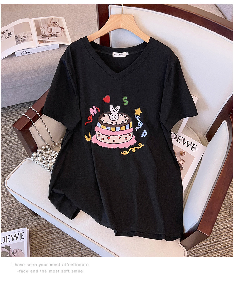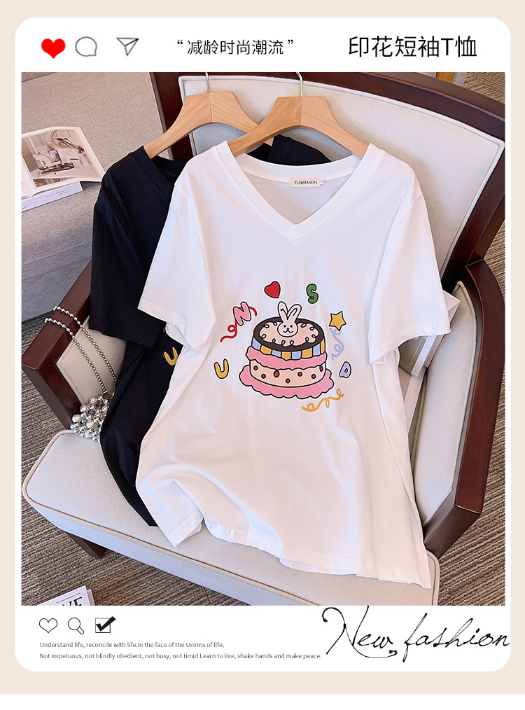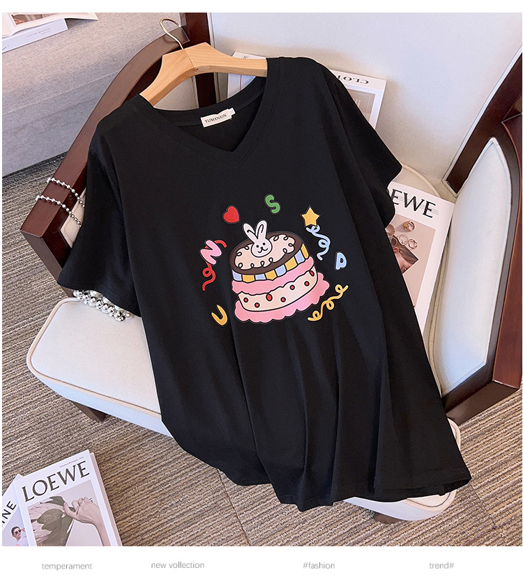 Vネックの新型加肥プラスサイズはやせてゆったりした中長の半袖tシャツの女性200/300/350斤6351