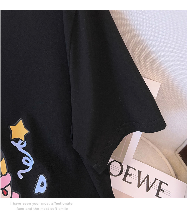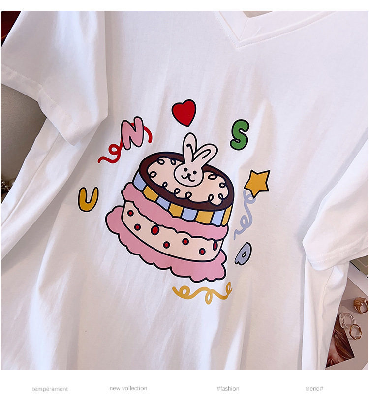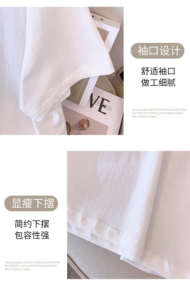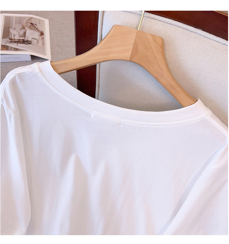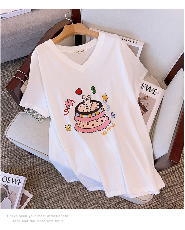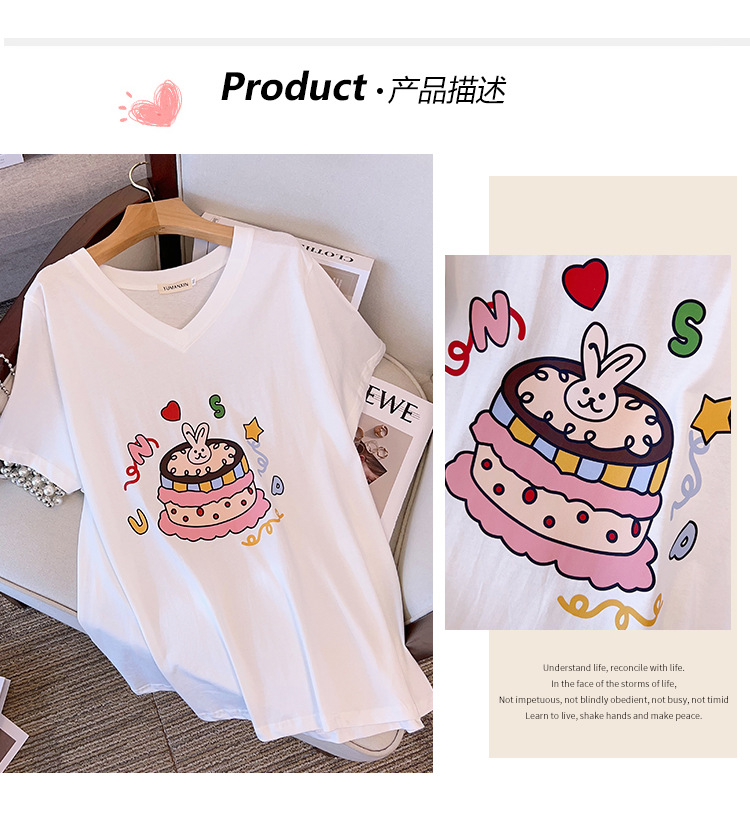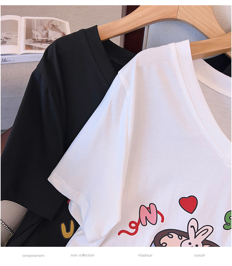 Vネックの新型加肥プラスサイズはやせてゆったりした中長の半袖tシャツの女性200/300/350斤6351