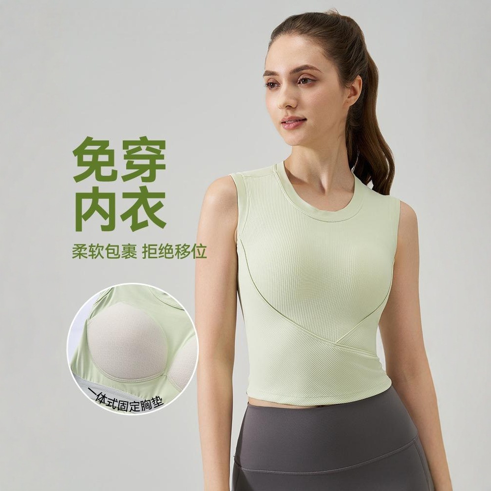 带胸垫瑜伽背心女新款跑步紧身无袖透气健身上衣外穿运动t恤夏季