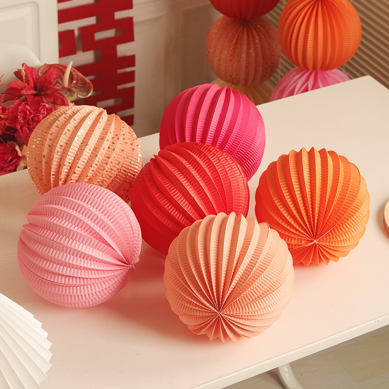 ネット赤カード写真中秋節赤い紙提灯スイカ折り畳み提灯デパート結婚式装飾シーン配置