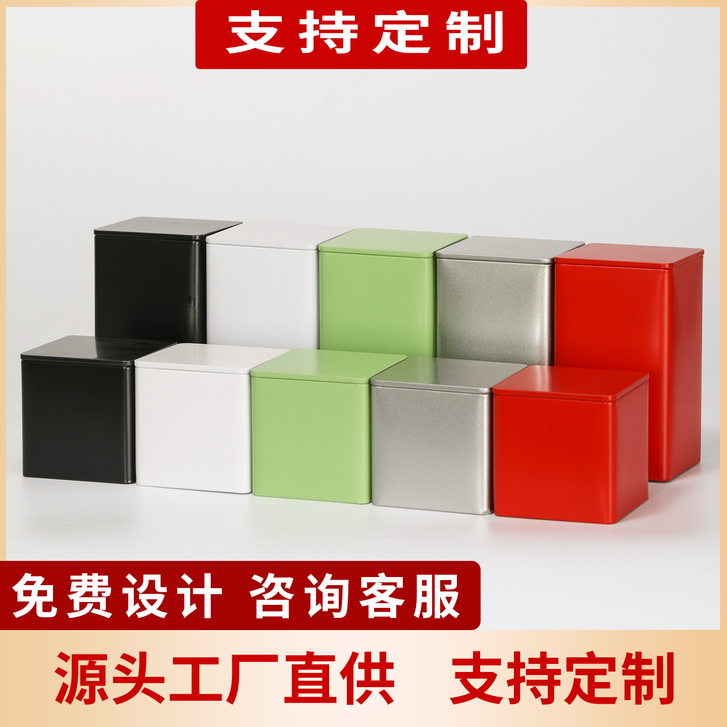 お菓子の鉄箱、お茶の鉄缶、正方形のブリキ箱、紅茶、金駿眉、龍井、プーアール茶の缶、鉄製のカスタム