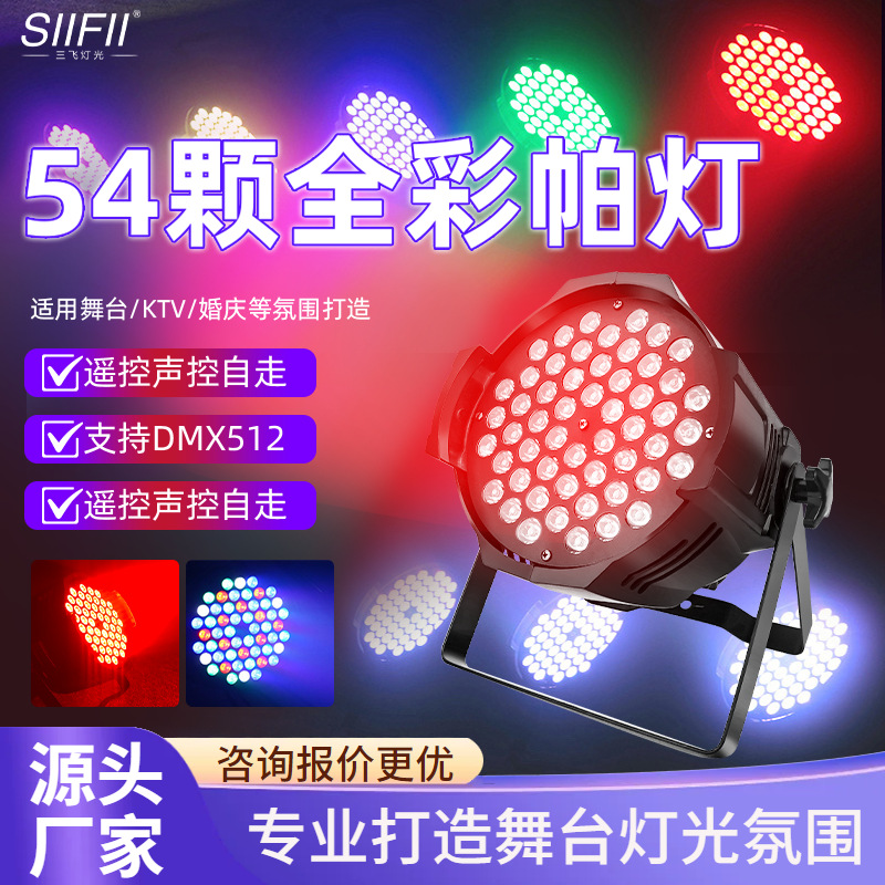 パライト54個フルカラー3wウェディングダンス室染色雰囲気ランプ七色フラッシュledランプ舞台照明メーカー