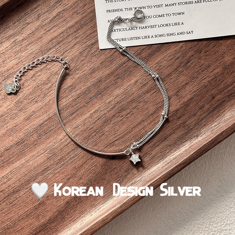 S999純銀星のブレスレットの女性の軽豪華な大衆は二重の丸い玉の軽豪華感のins風の手飾りのブレスレットを設計します。