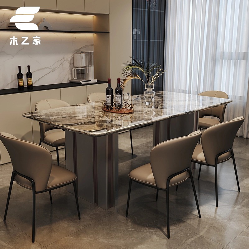 意式轻奢大理石餐桌家用高级感设计师奢石餐桌高端餐厅吃饭桌子