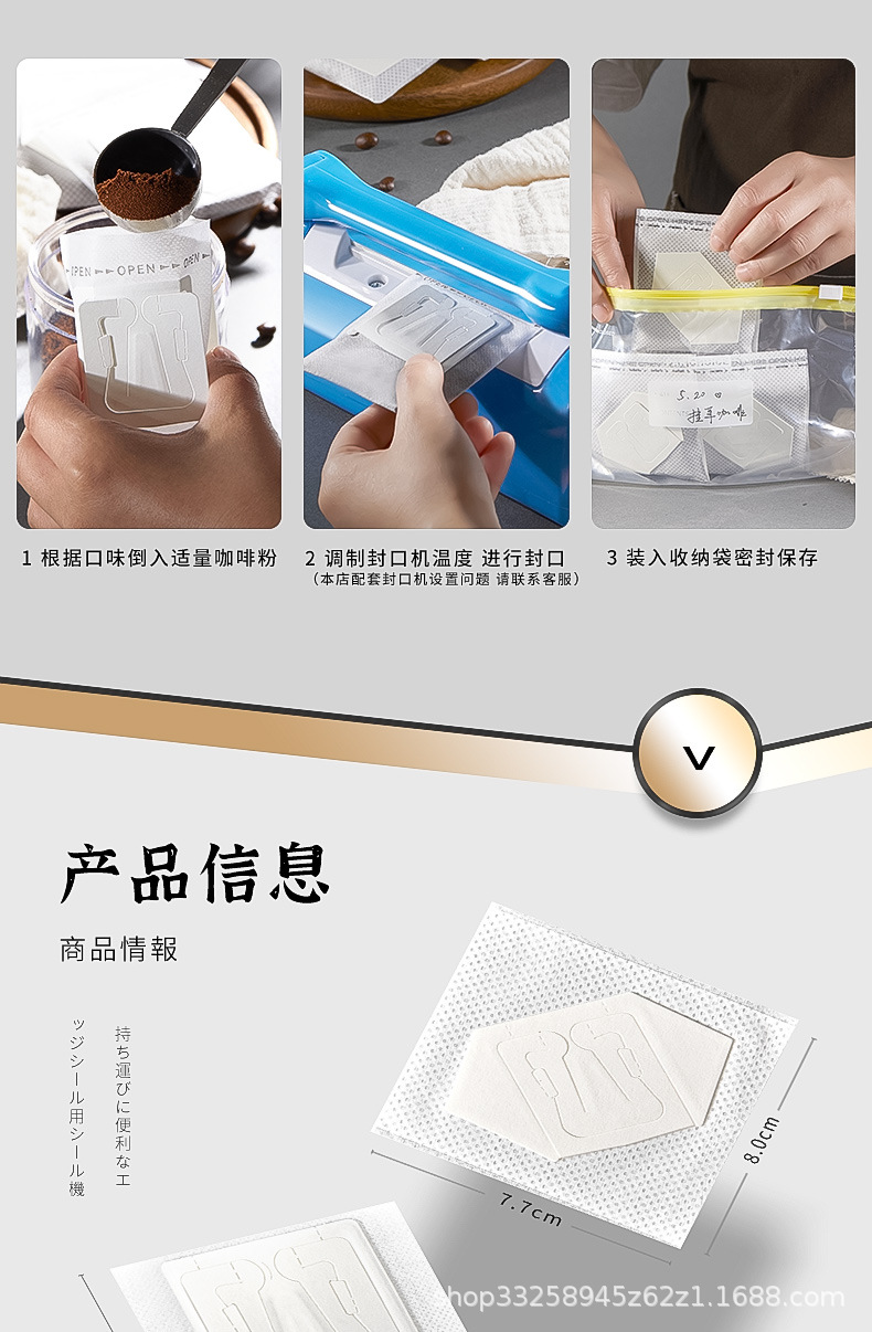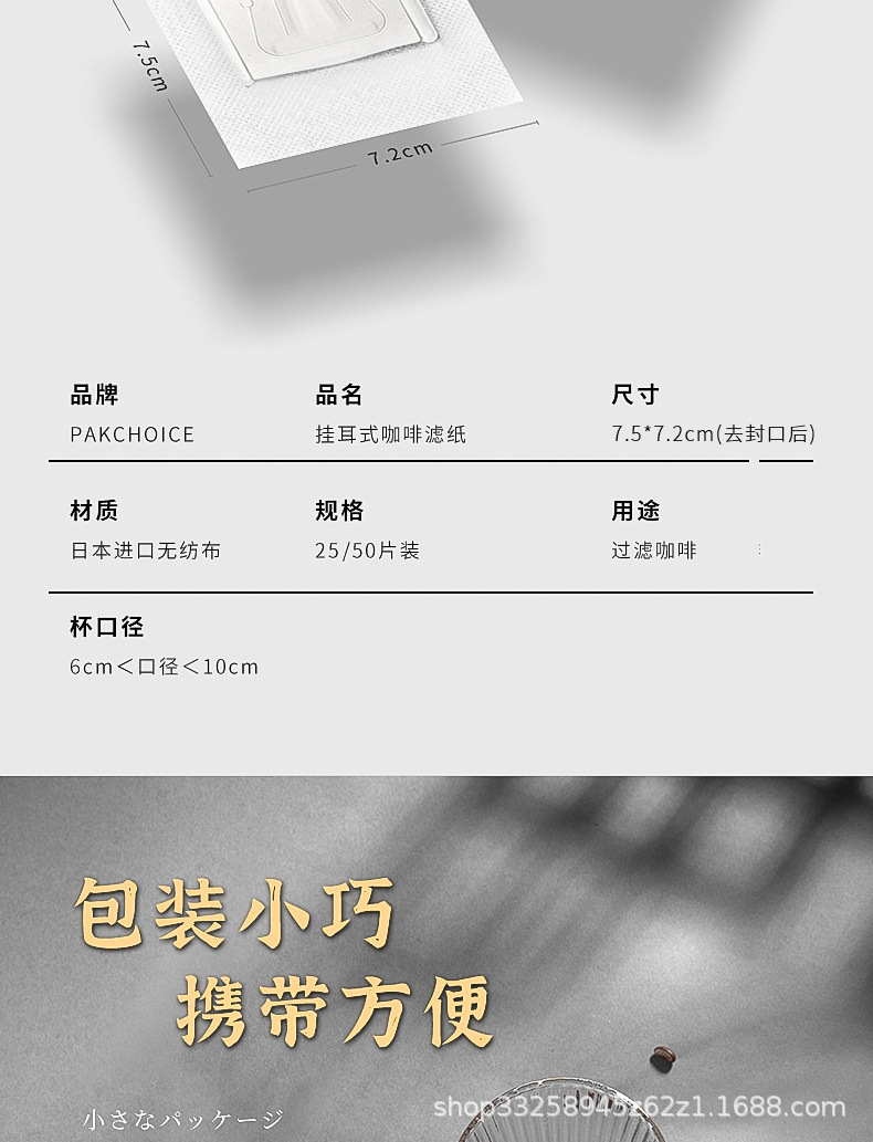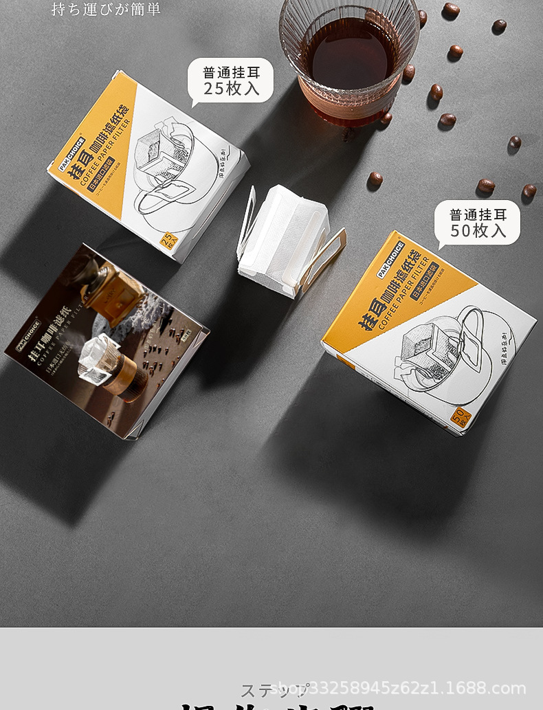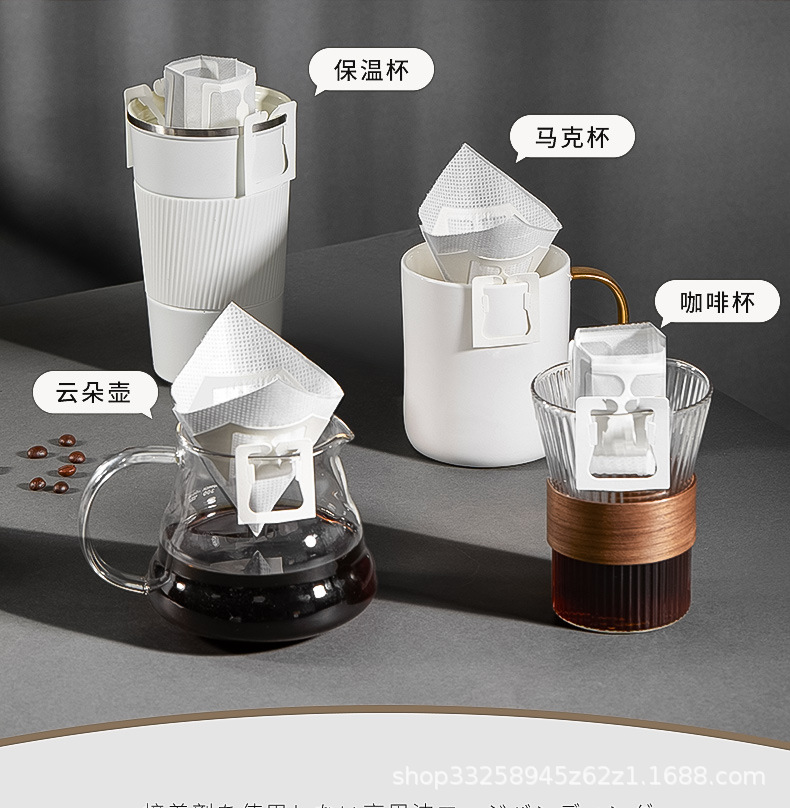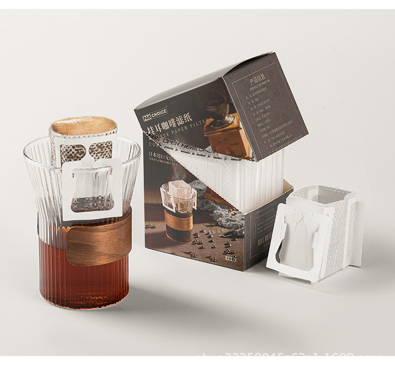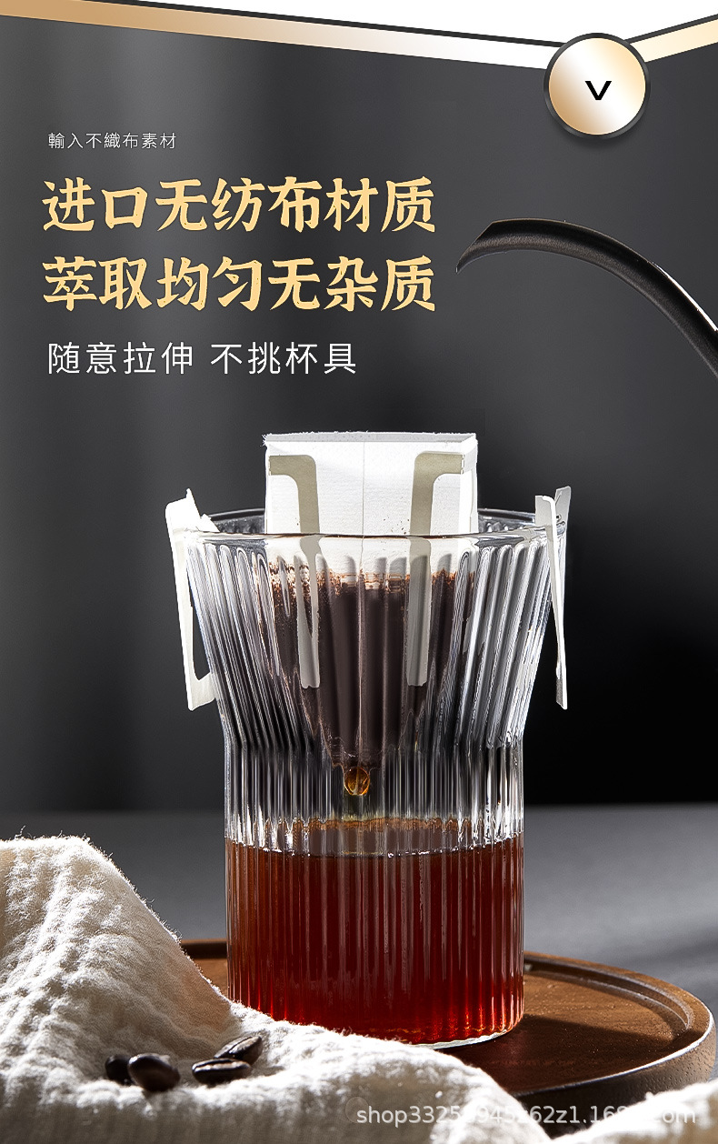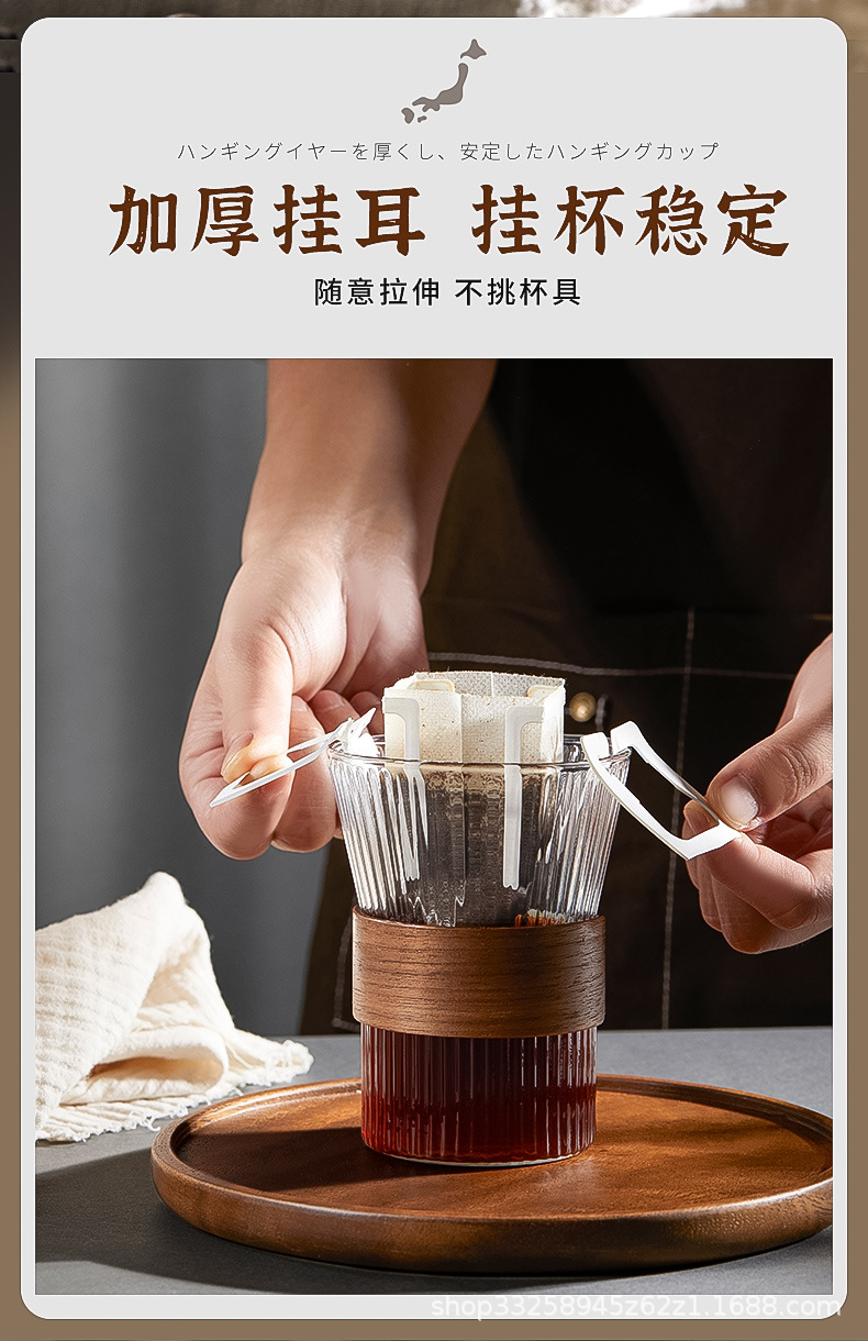 日本の耳掛けコーヒーろ紙コーヒー粉ろ過袋は、内袋のドリップフィルターを厚くしてコーヒーろ紙を流す