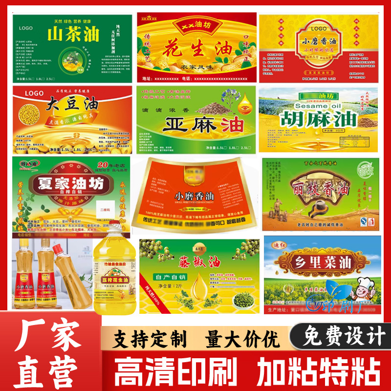 カスタムデザイン野生ツバキ油ラベルシール落花生油大豆油ゴマ香油不乾性瓶シール印刷