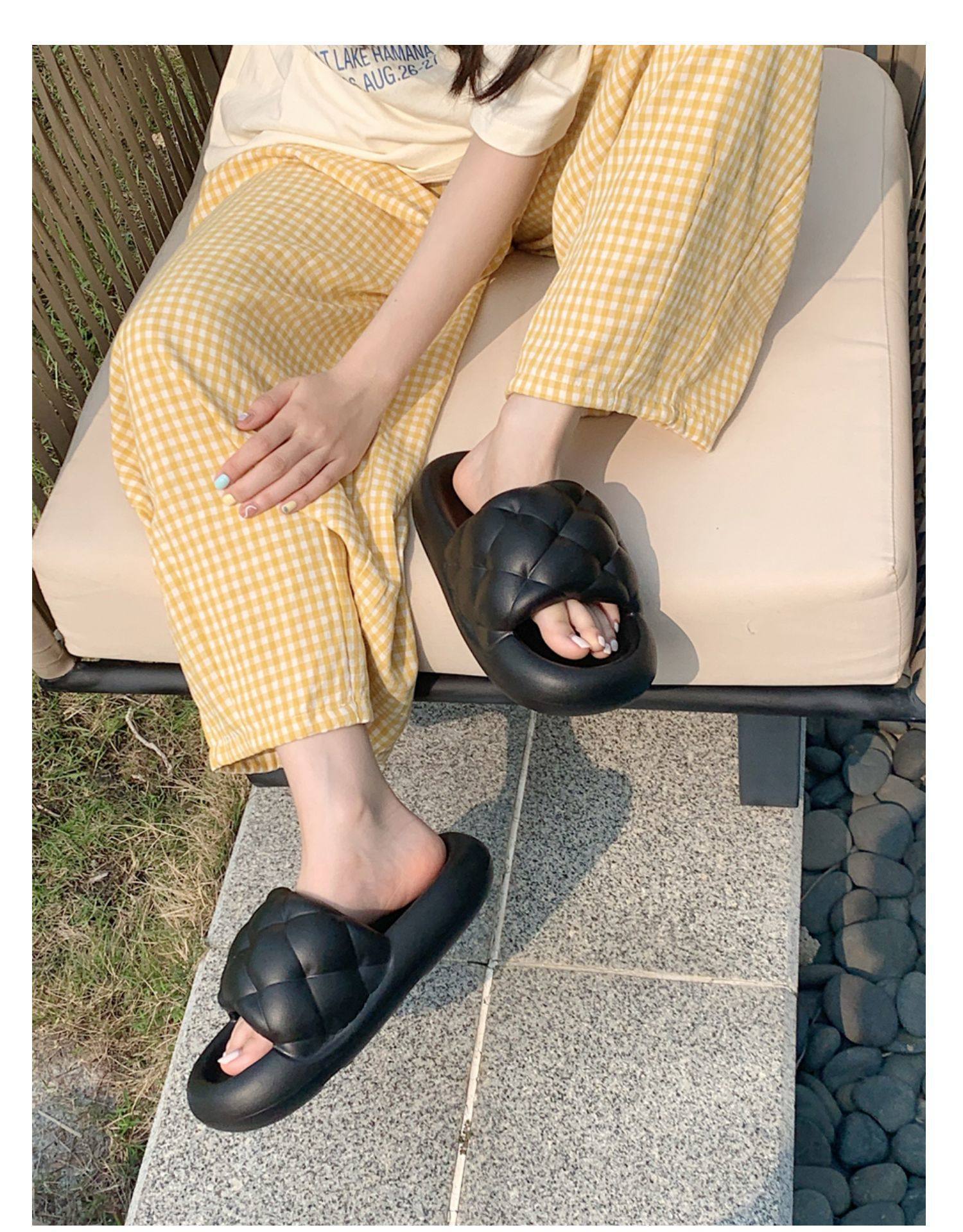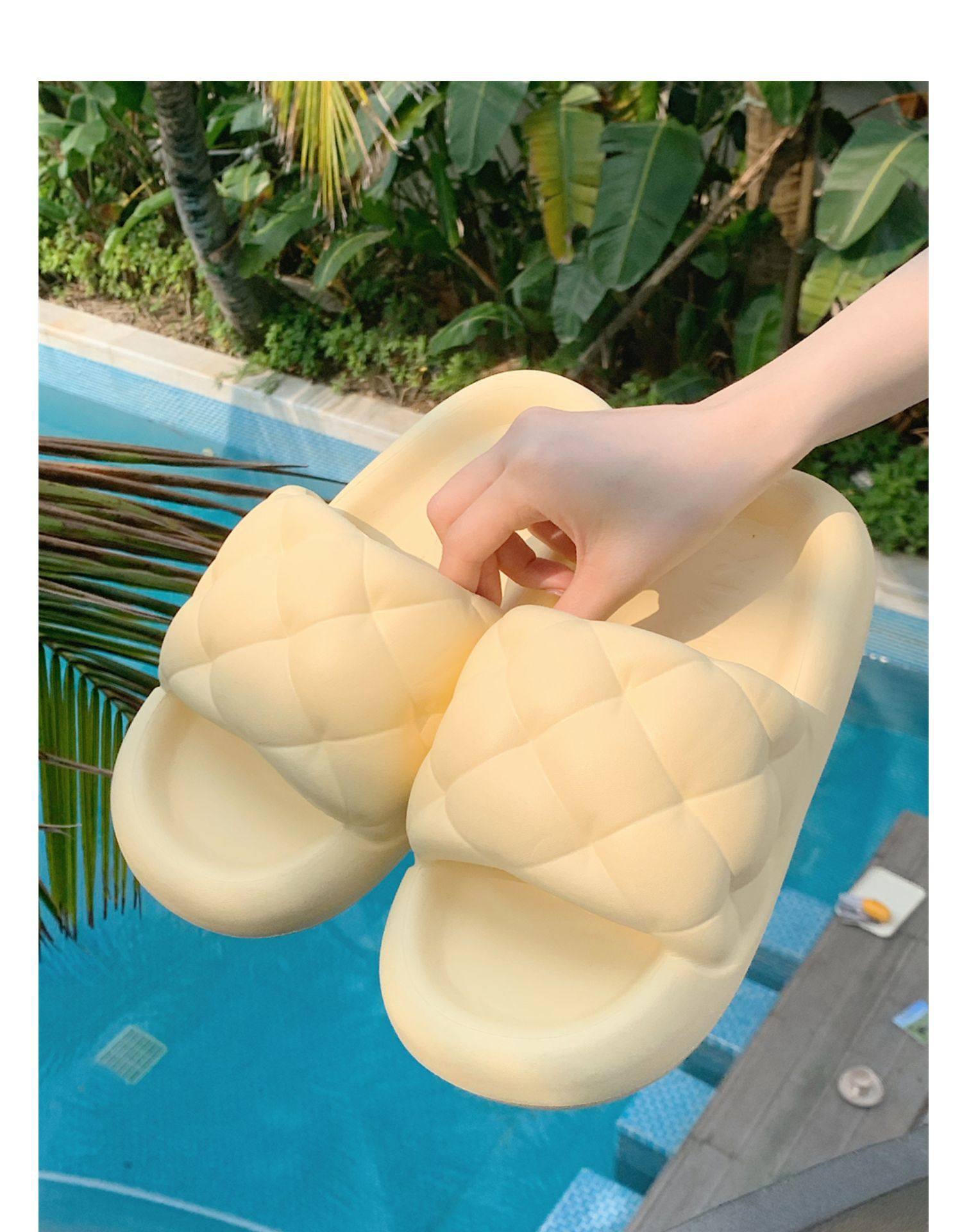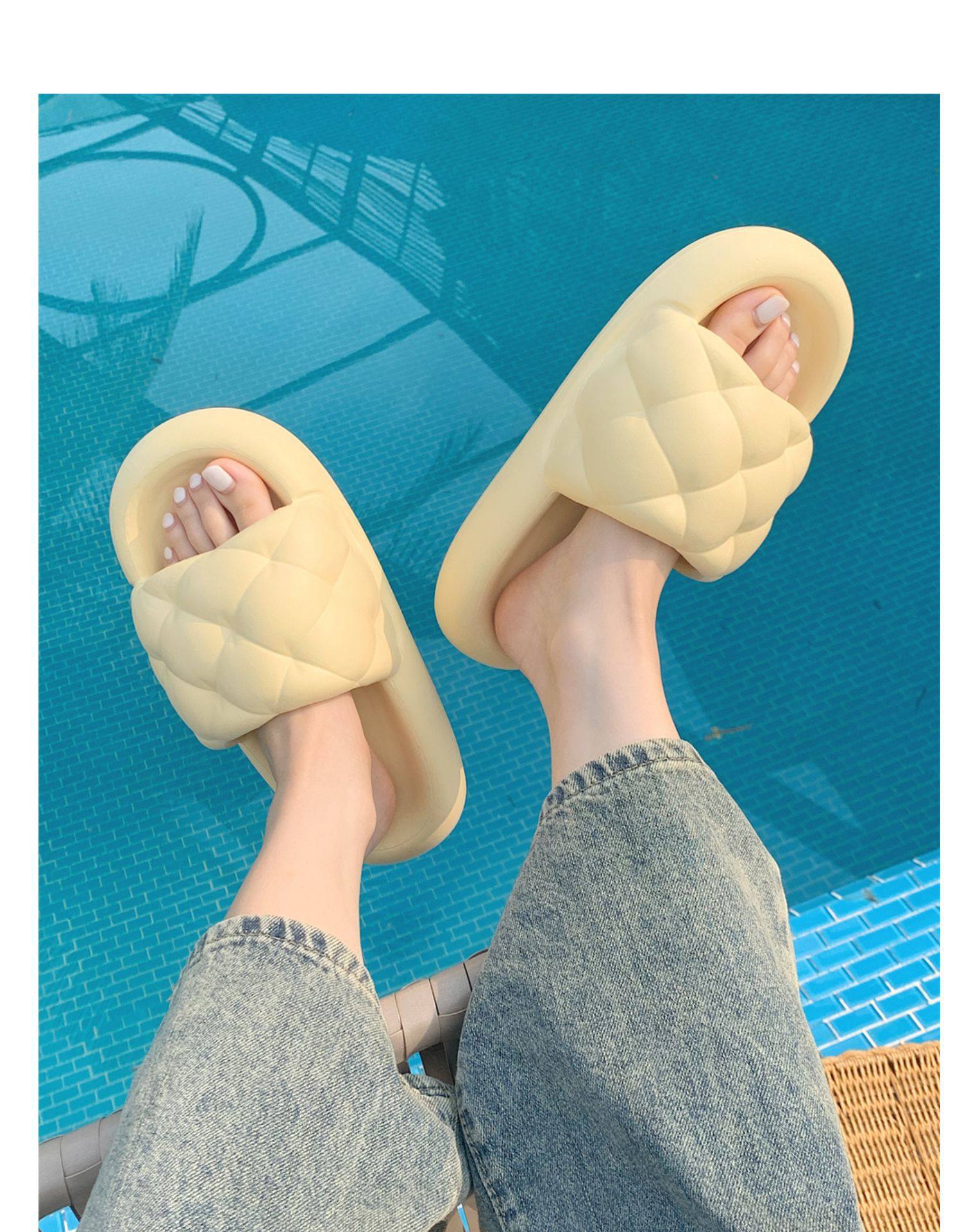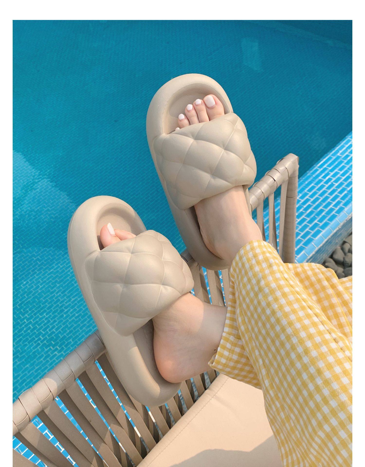 おしゃれでシンプルな純色の菱格の厚い底の外は冷たいスリッパを履いています。