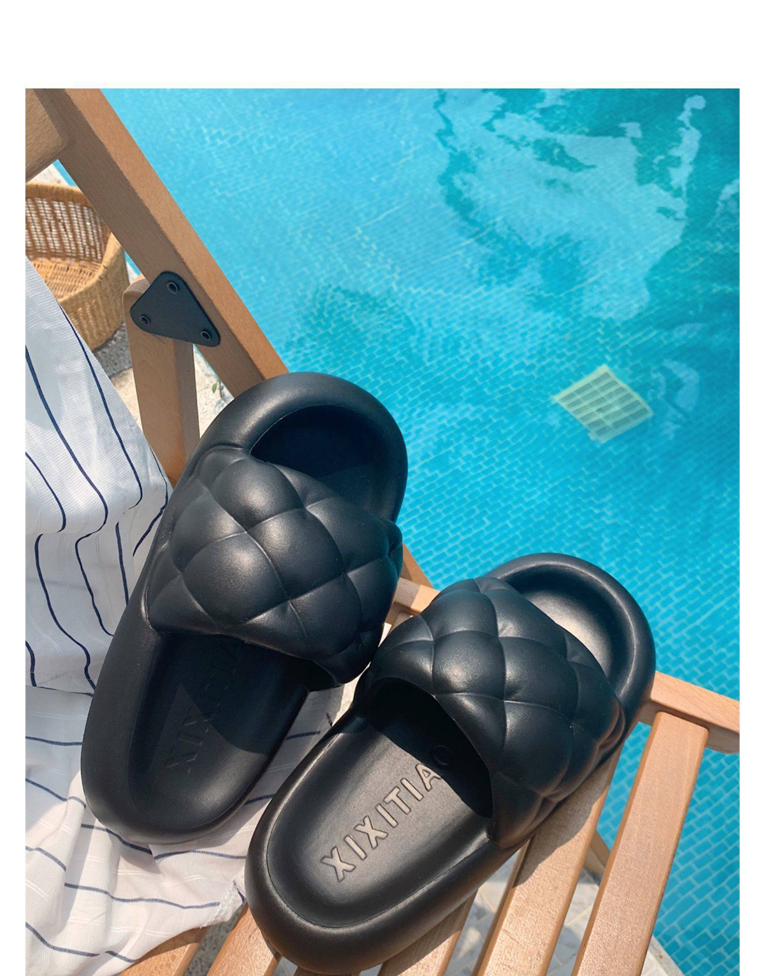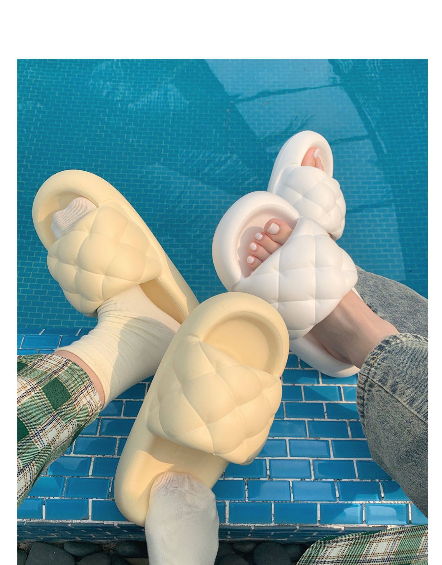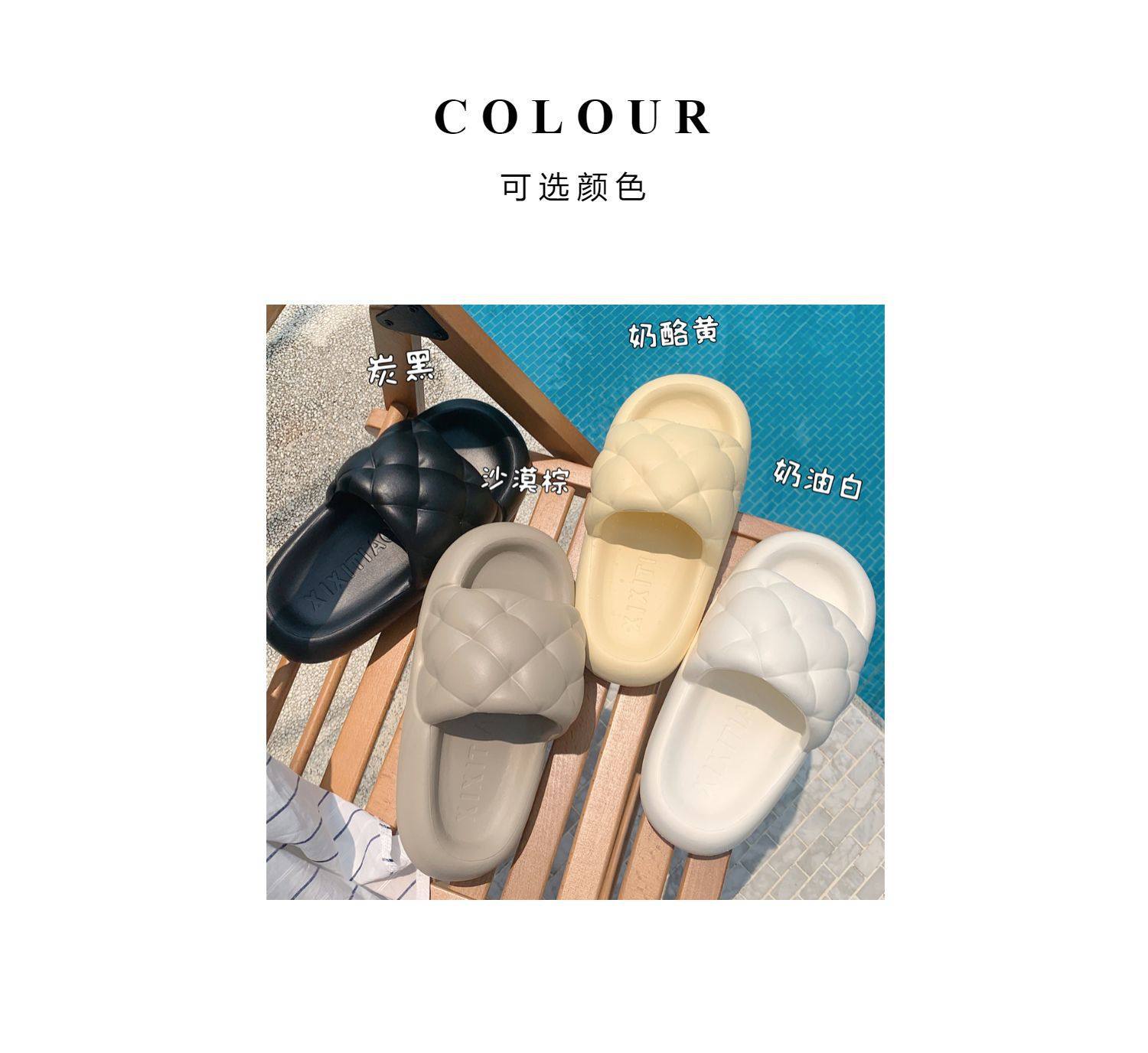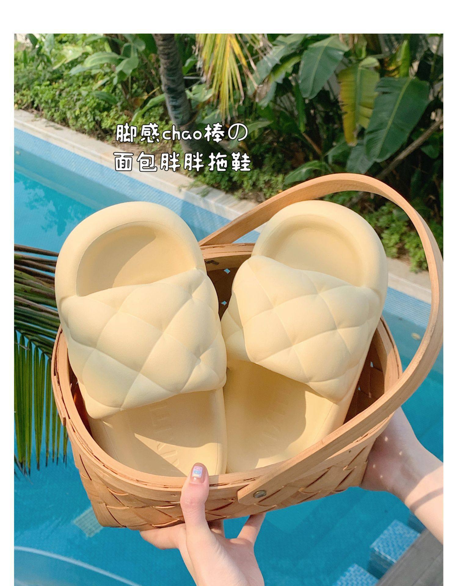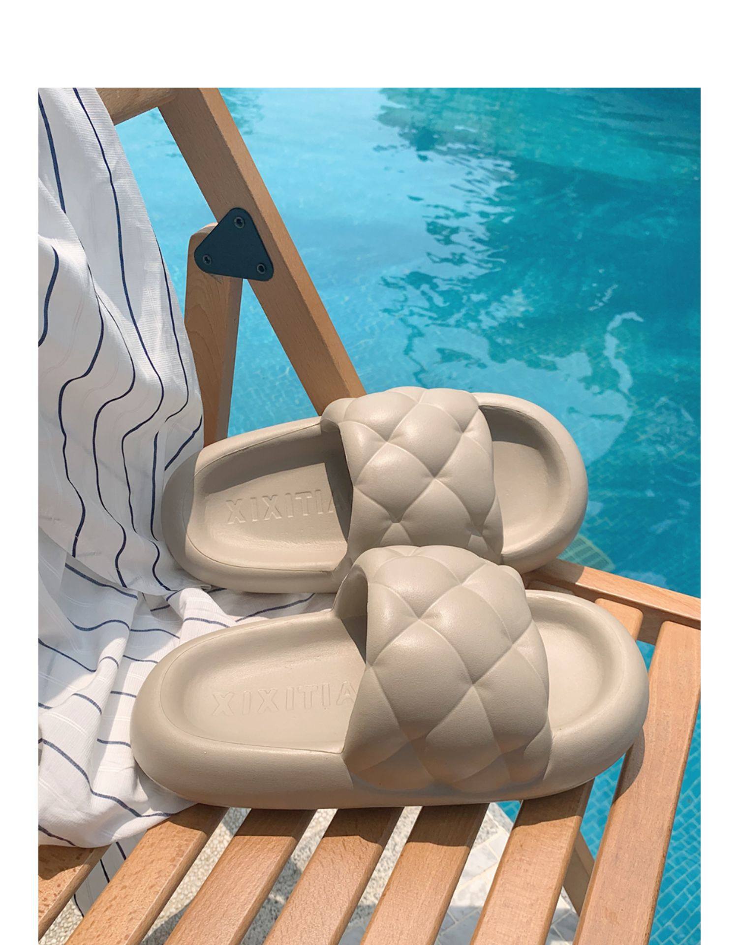 おしゃれでシンプルな純色の菱格の厚い底の外は冷たいスリッパを履いています。