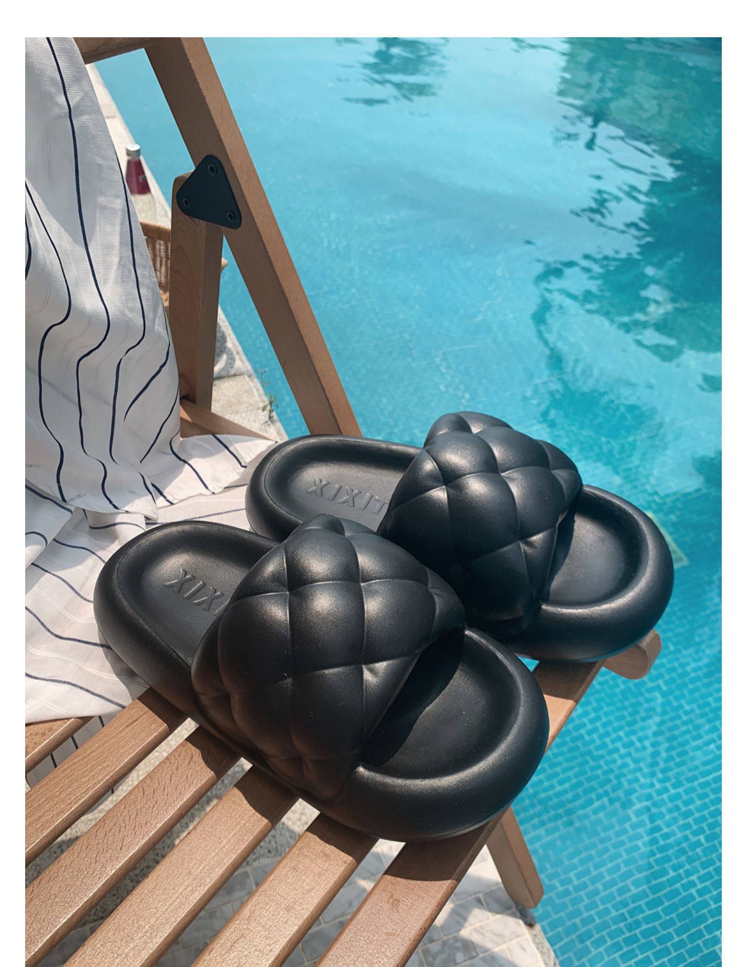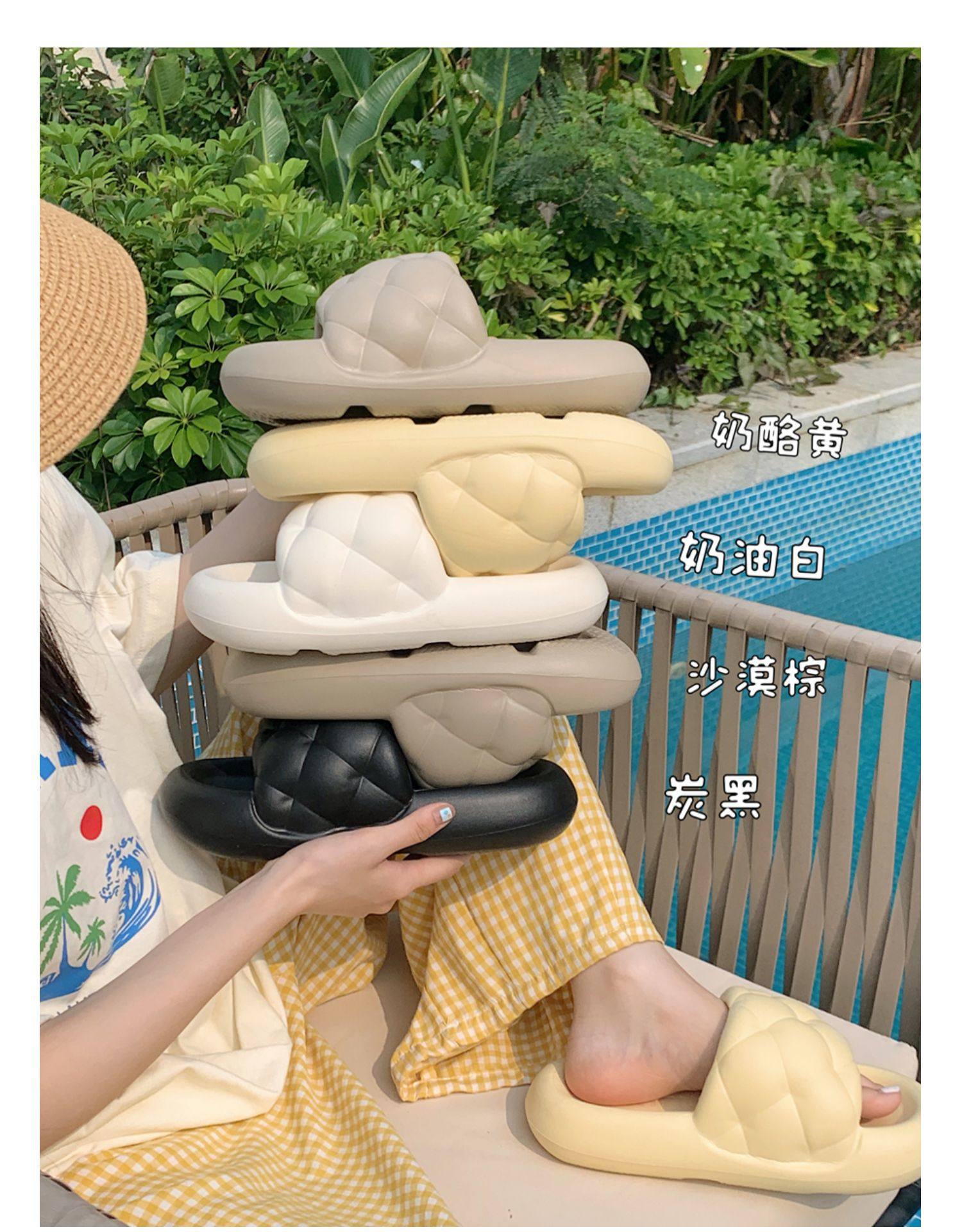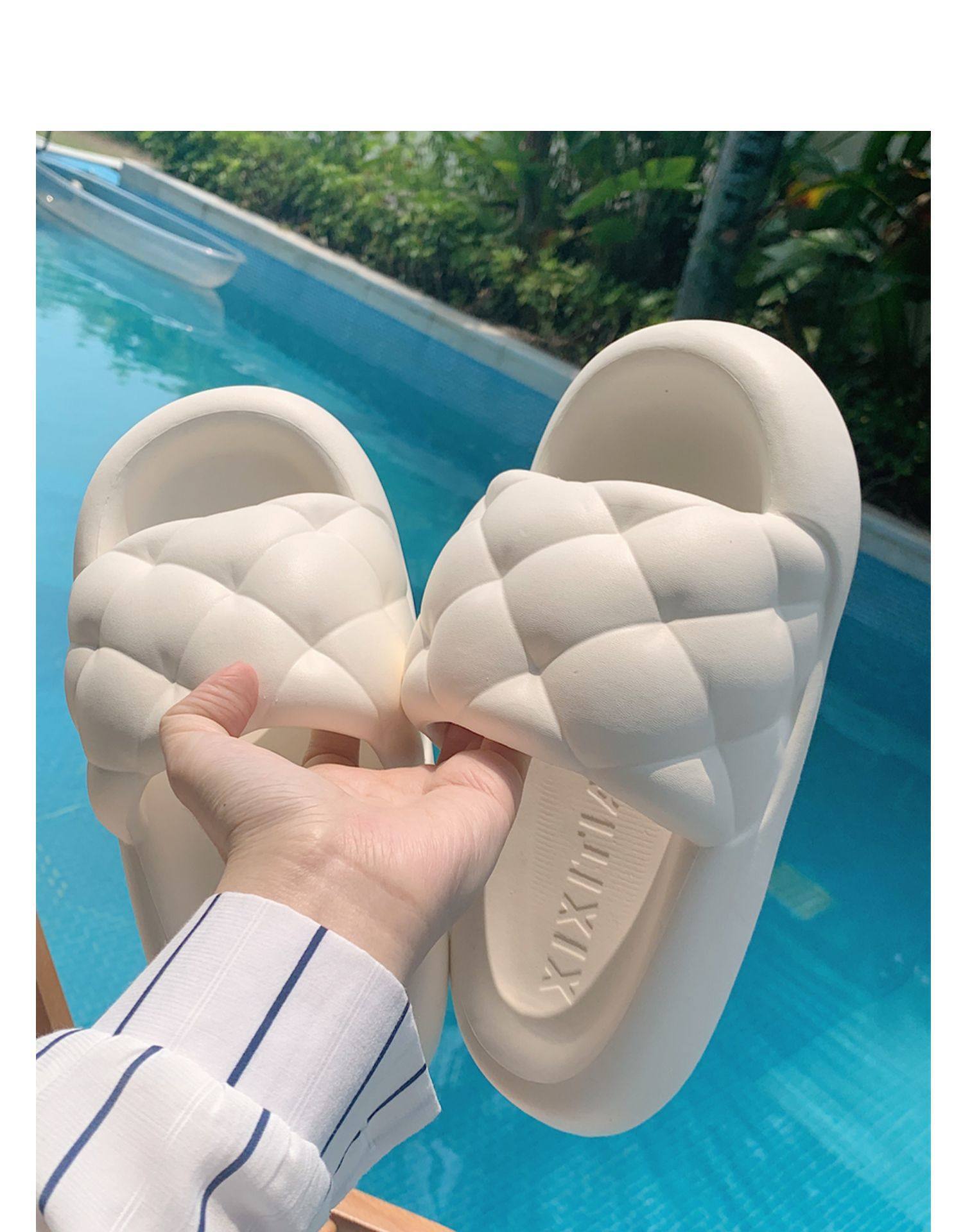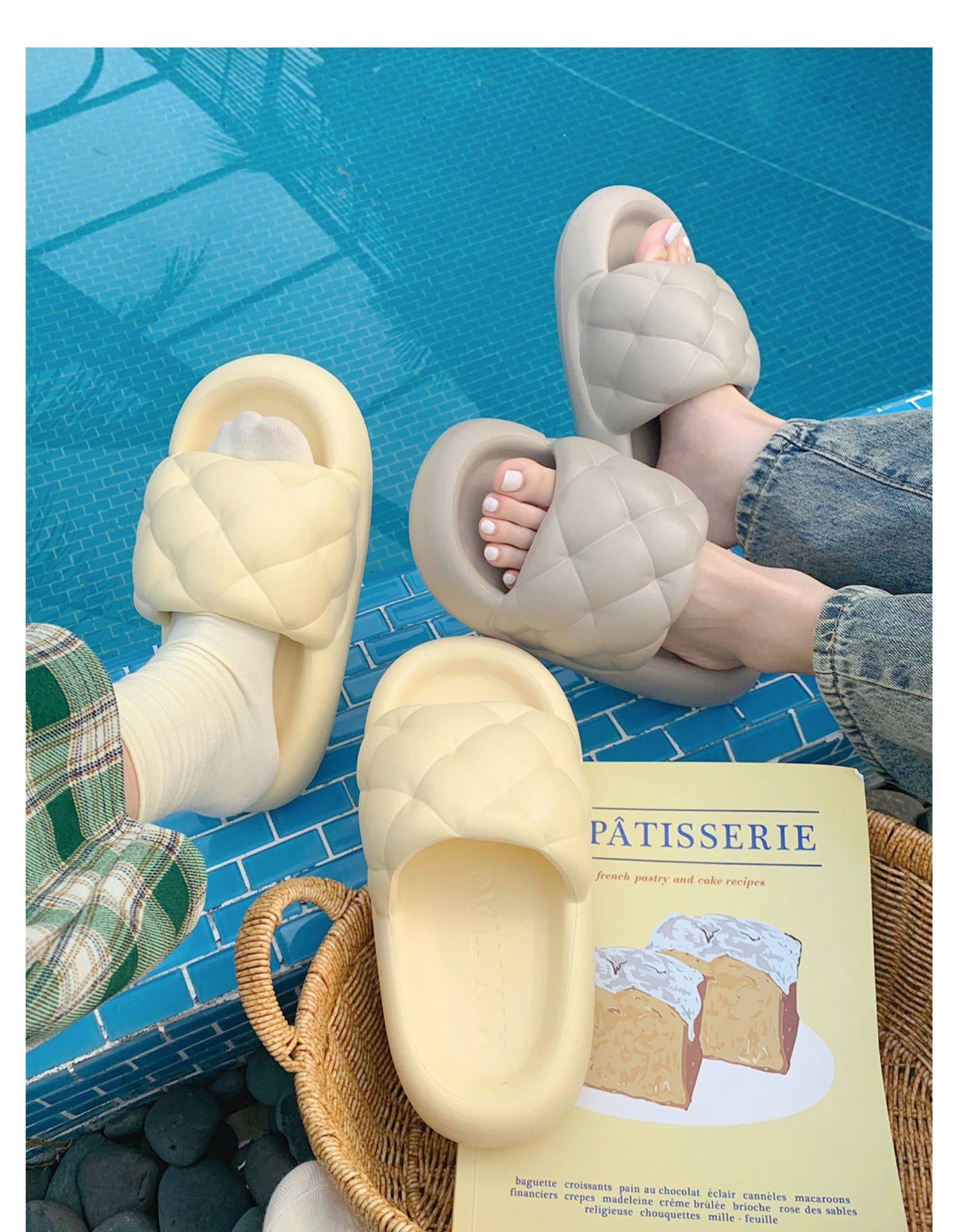 おしゃれでシンプルな純色の菱格の厚い底の外は冷たいスリッパを履いています。