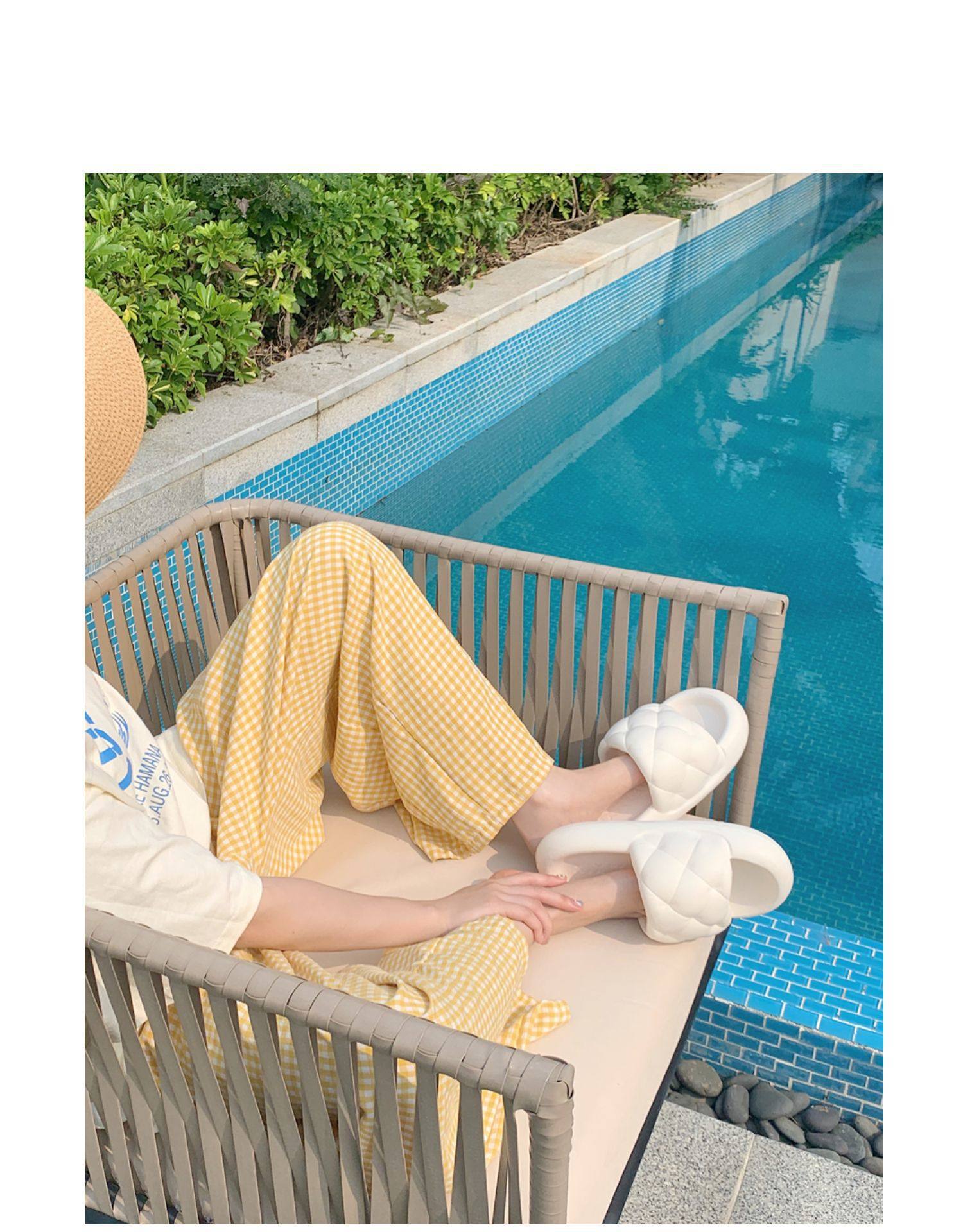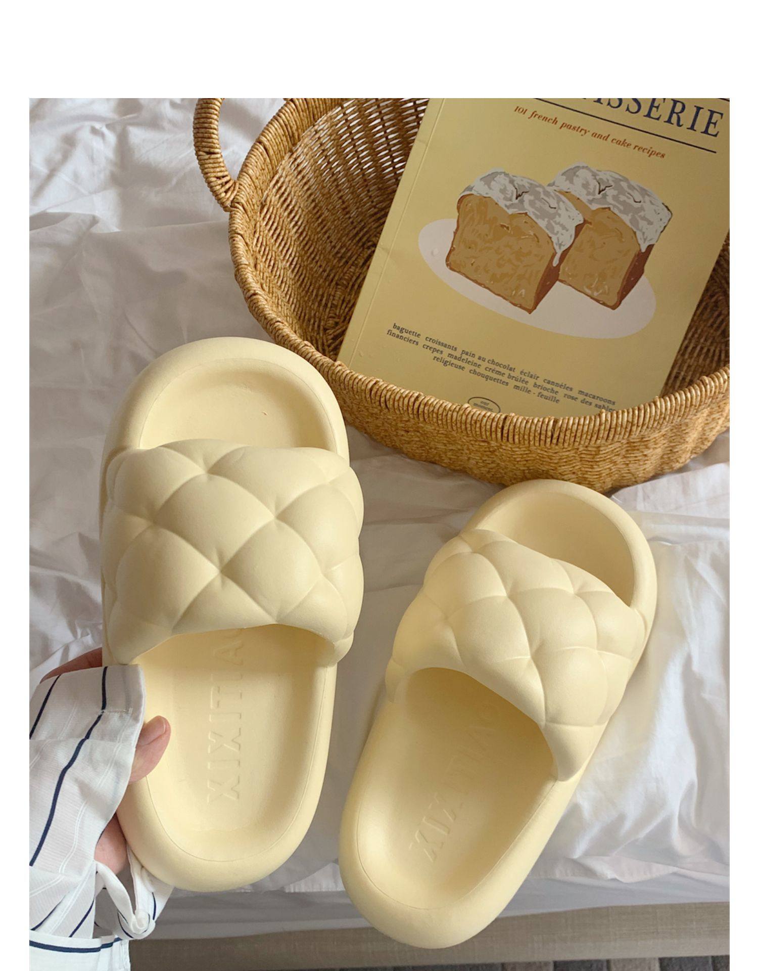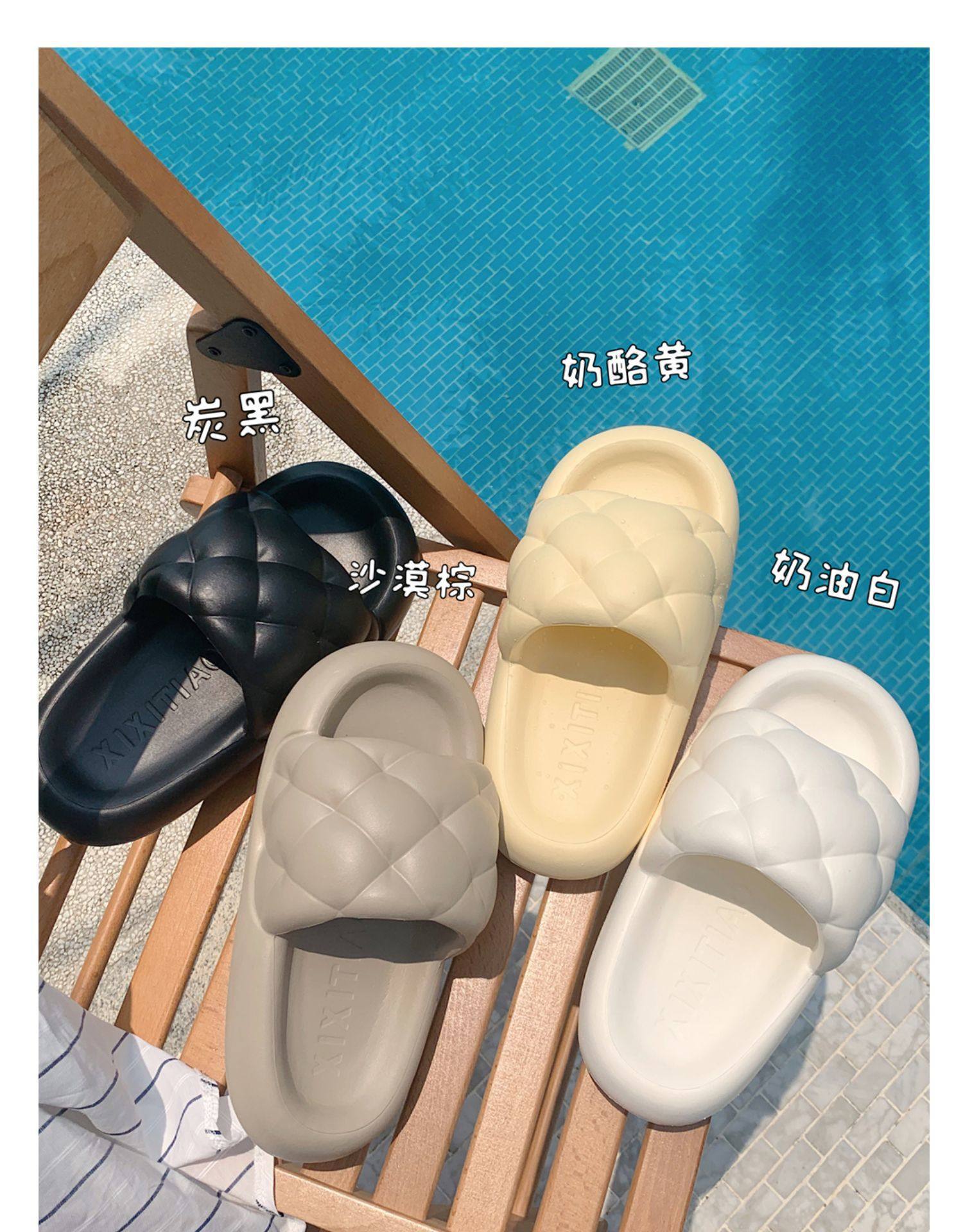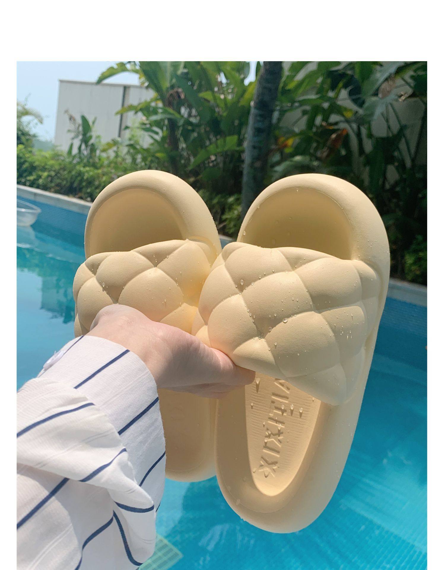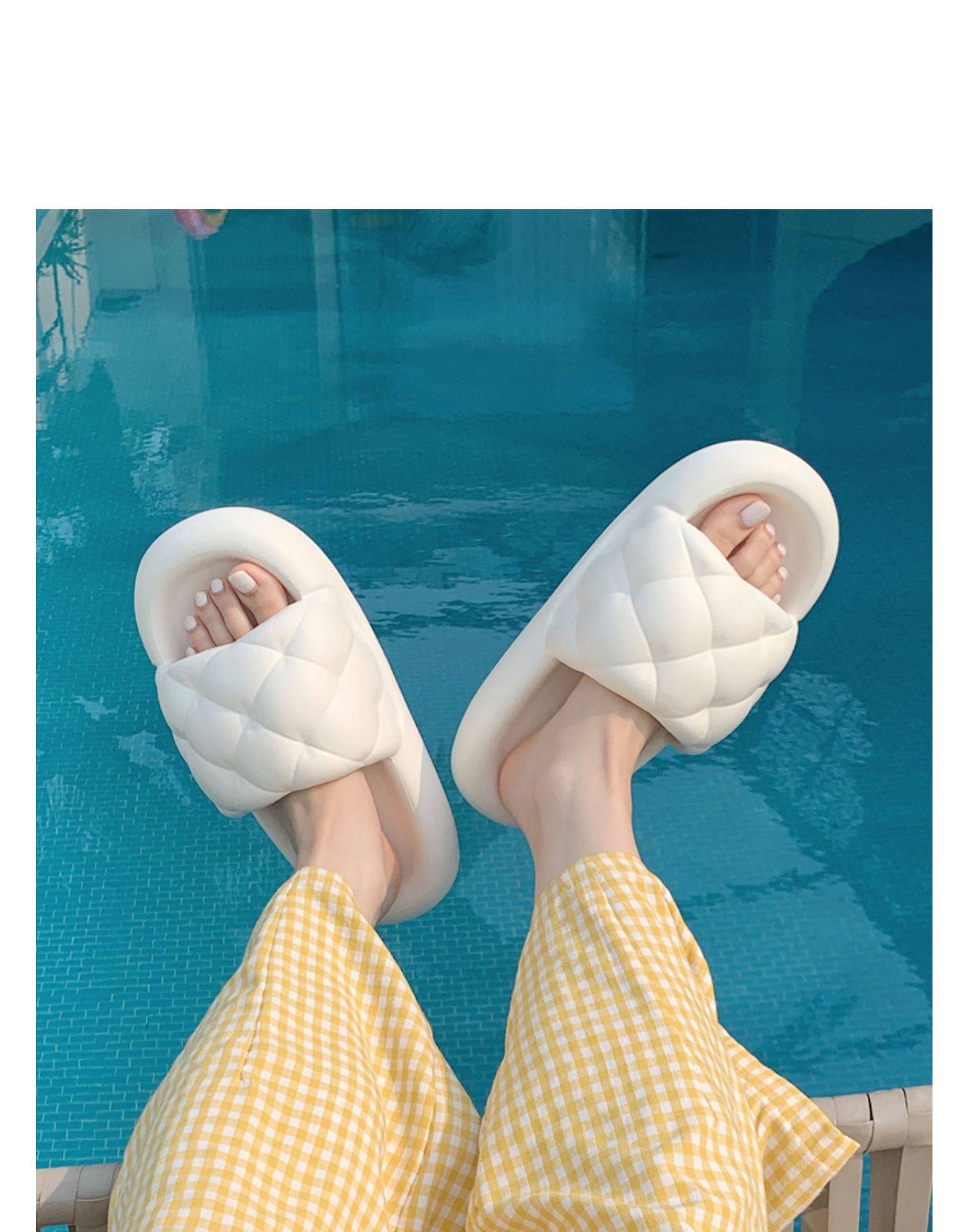 おしゃれでシンプルな純色の菱格の厚い底の外は冷たいスリッパを履いています。