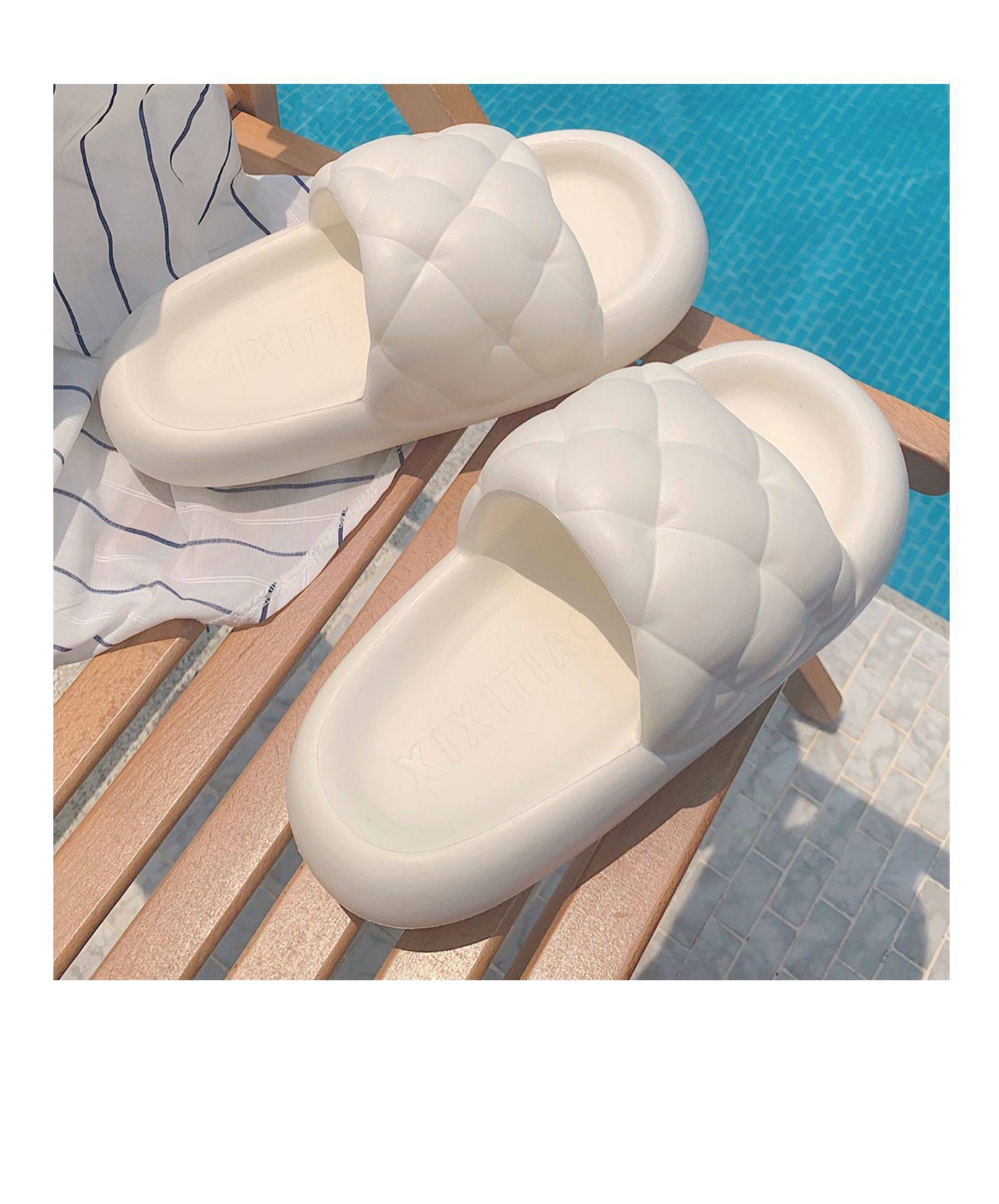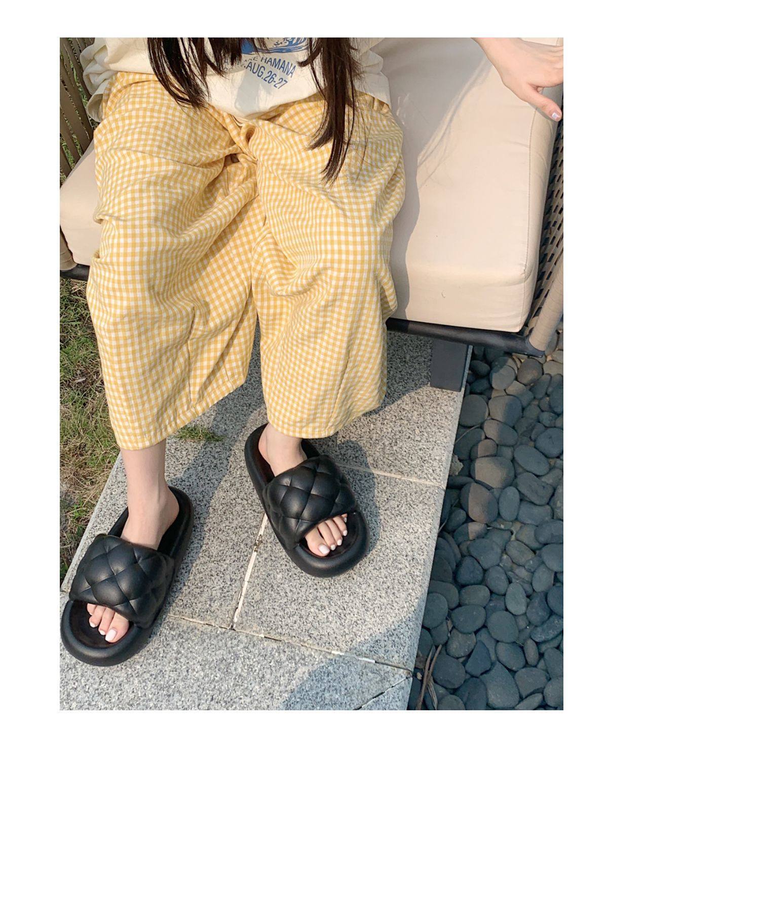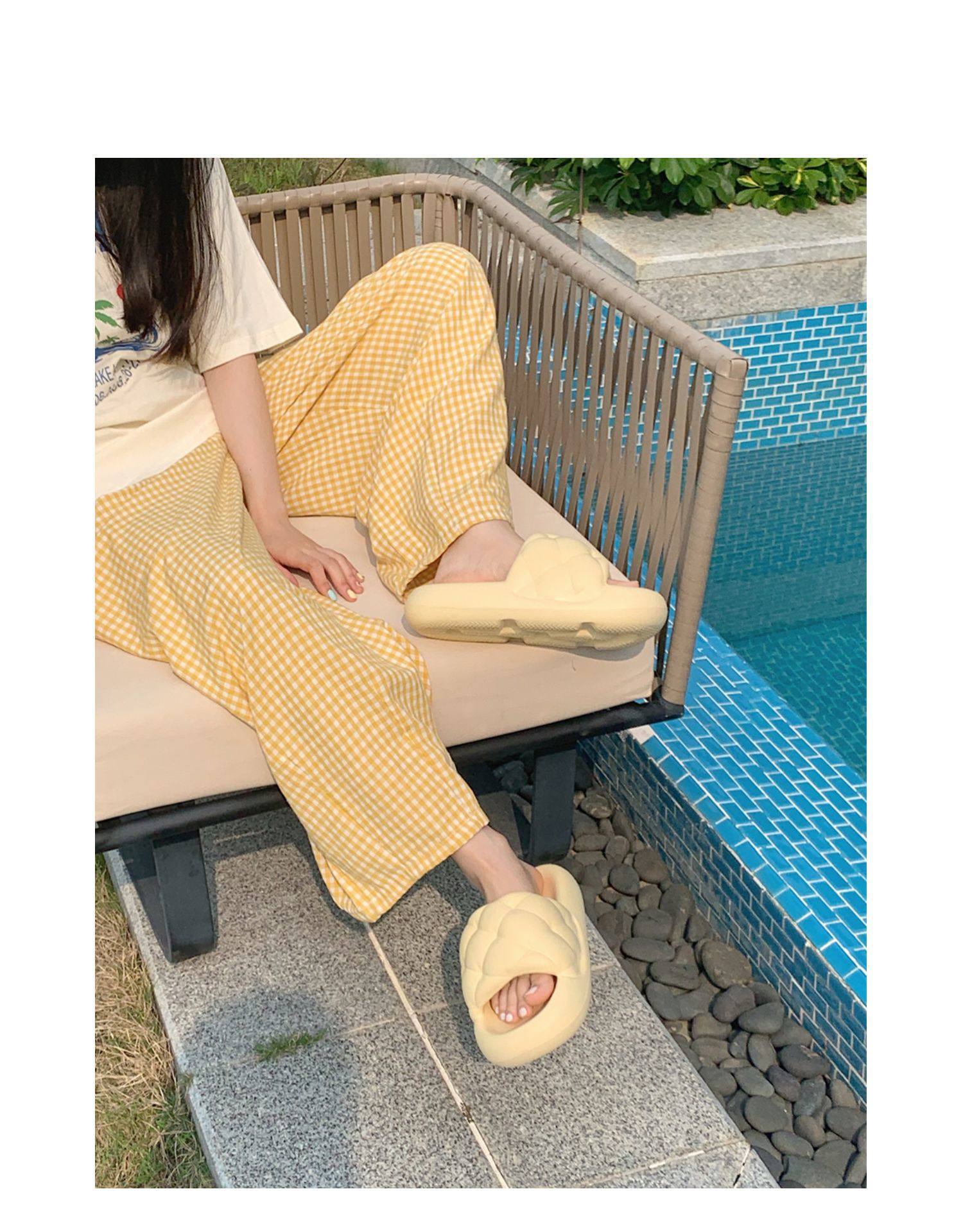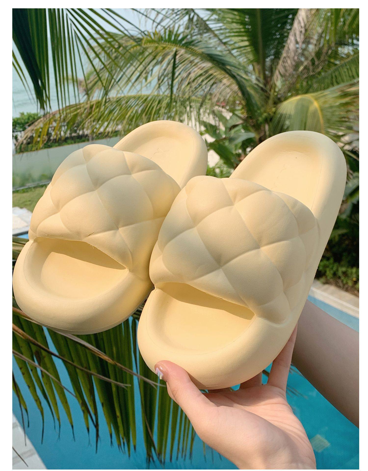 おしゃれでシンプルな純色の菱格の厚い底の外は冷たいスリッパを履いています。