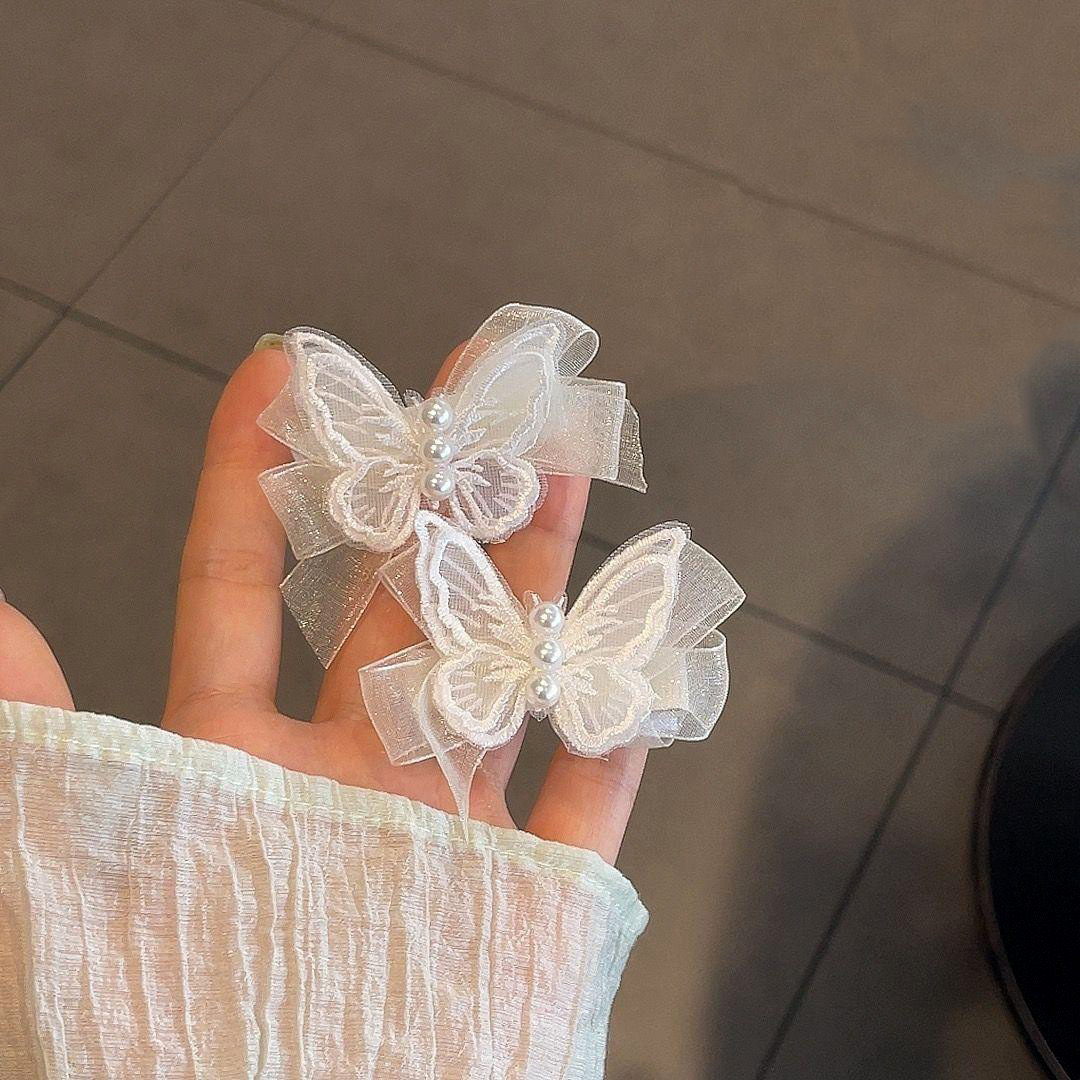 超仙真珠蝶ヘアクリップ女森系白レースサイドクリップインスタ高级感カモ口クリップ髪饰り