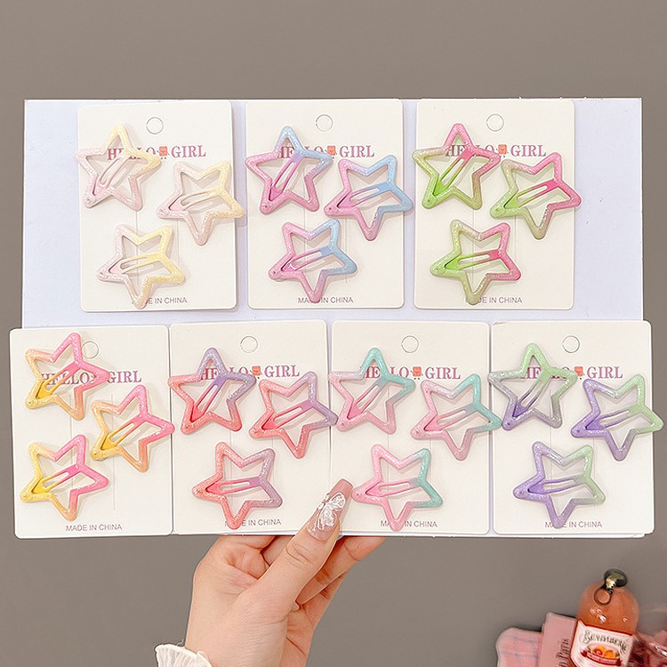 3个/卡4cm渐变星星发夹侧边夹刘海夹碎发发卡五角星头发夹子头饰