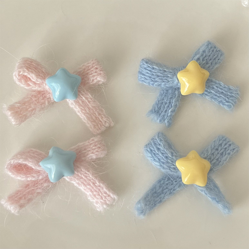2024秋冬乳呼毛糸星蝶星前髪クリップかわいい少女ツインテール髪飾り