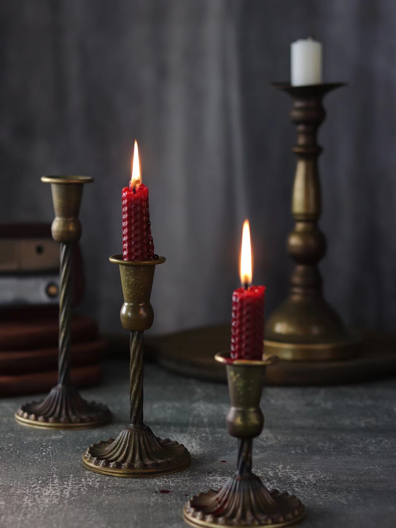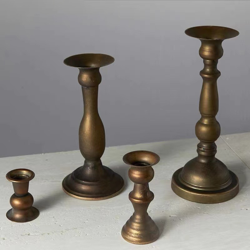 クロスボーダーレトロヨーロピアンスタイル燭台装飾品B&Bリビングルームダイニングテーブルアイアンキャンドルホルダー写真撮影小道具銅色キャンドルカップ