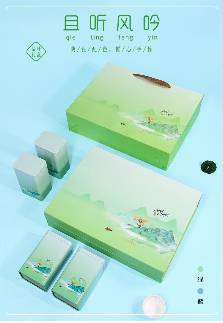 高級新製品は風吟茶葉通版毛先礼箱包装単缶125グラム半斤製本を聞く