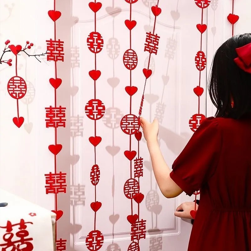 結婚用品一式、結婚式の部屋の装飾、喜字、リビングルーム、寝室、囍結婚式のドアステッカーセット、楽しい結婚式の装飾