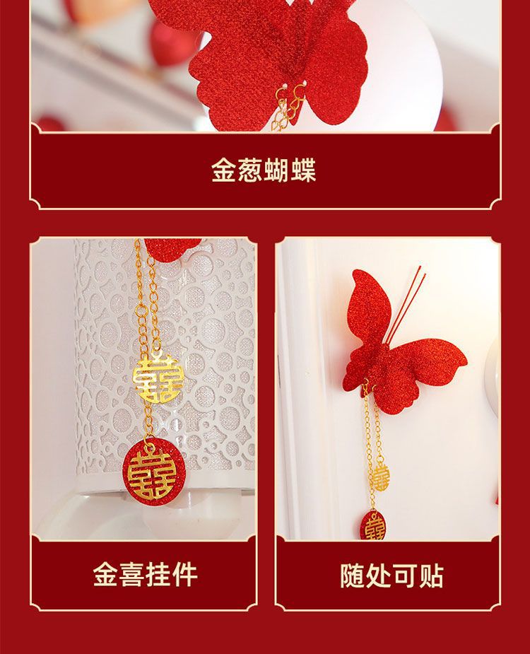 結婚部屋の配置は立体的な赤い喜字蝶新居寝室スイッチ結婚装飾結婚式の配置用品である