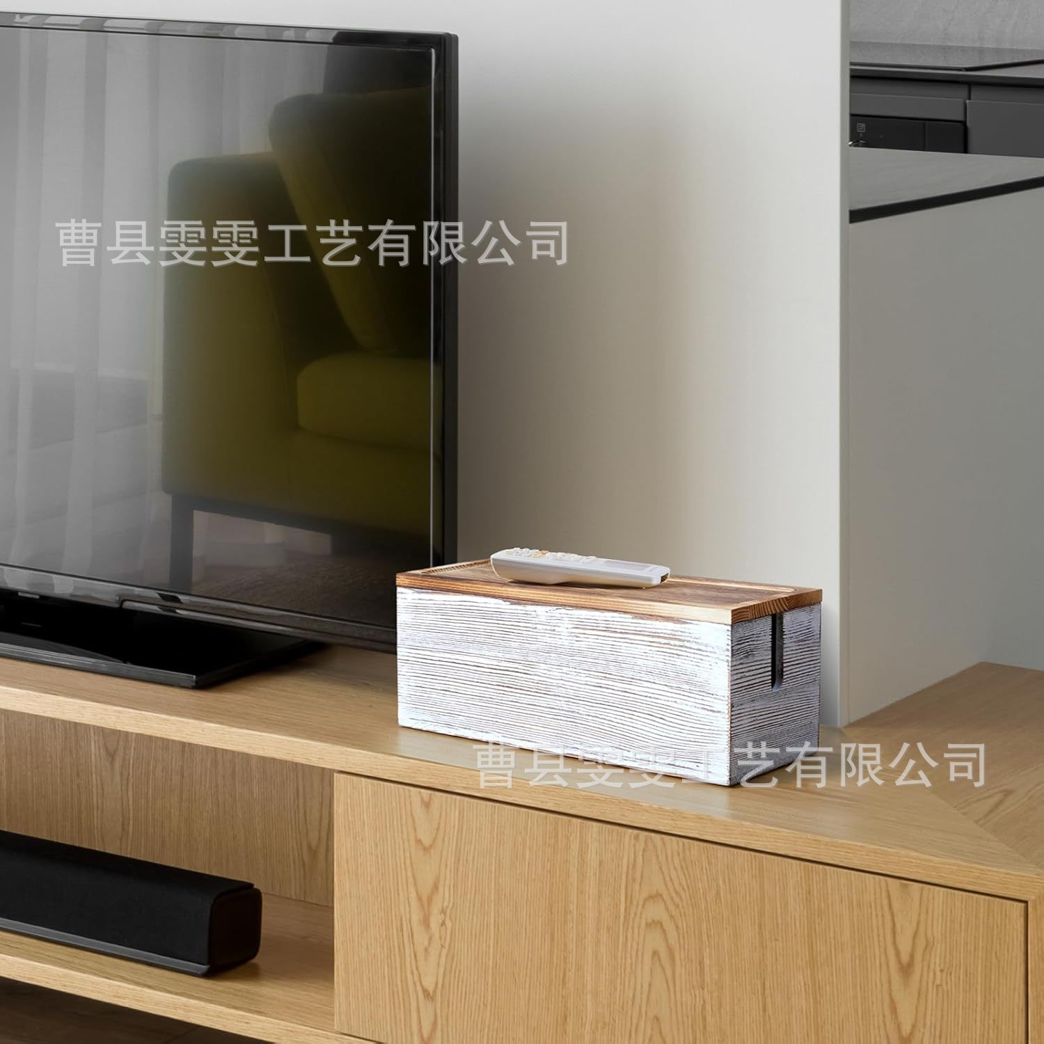 木製長方形収納ボックスデスクトップストリップ収納ボックス蓋付きコンピュータデスク収納ボックスデータケーブル保護ボックス