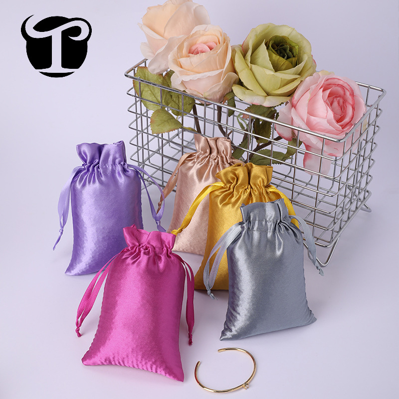 サテン巾着袋、サテンバッグ、ジュエリー収納袋、小物防塵ジュエリー、マルチカラーオプションのロゴ印刷