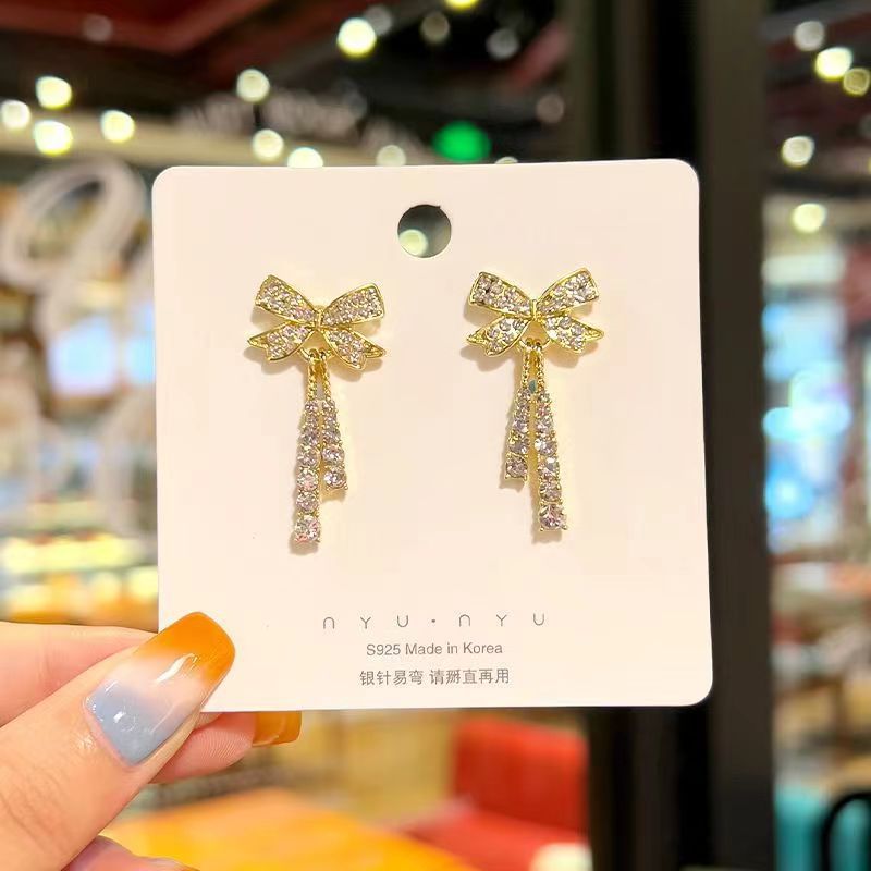 ネット赤高級感冷たい風シンプルな超フラッシュドリルピアスs925銀針小衆デザイン感ファッションイヤリング女